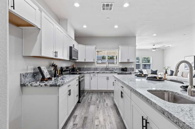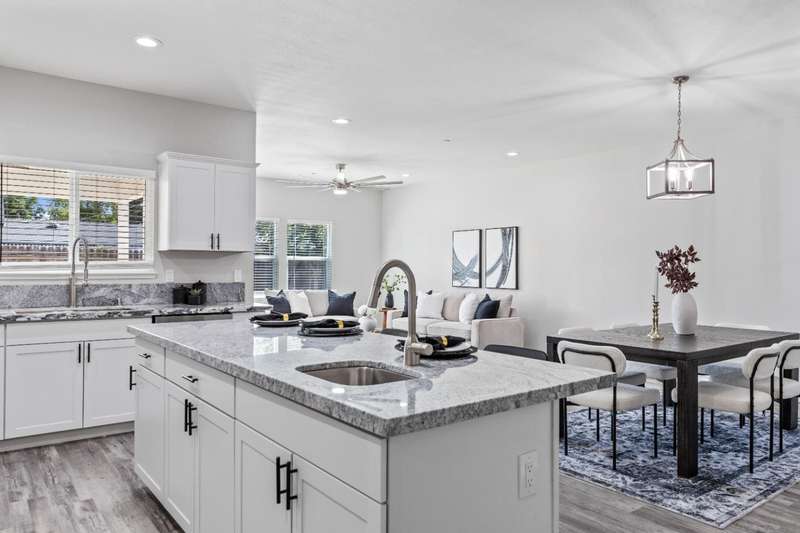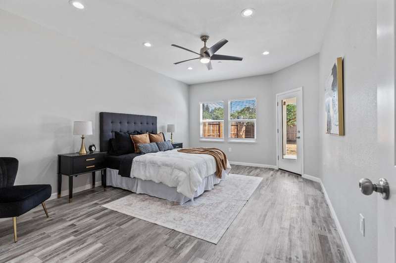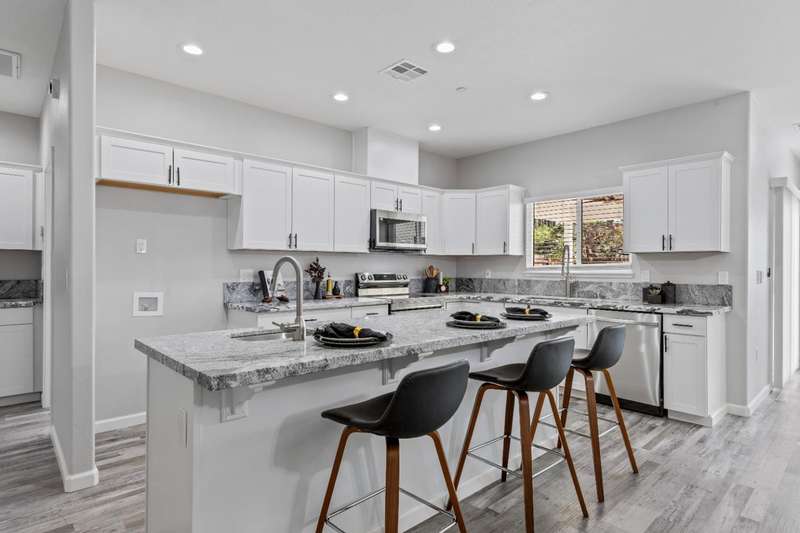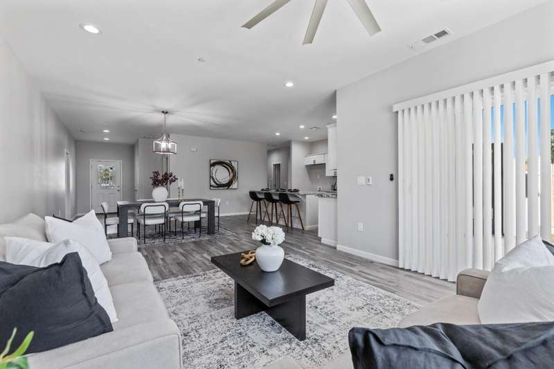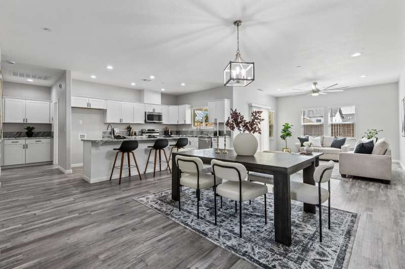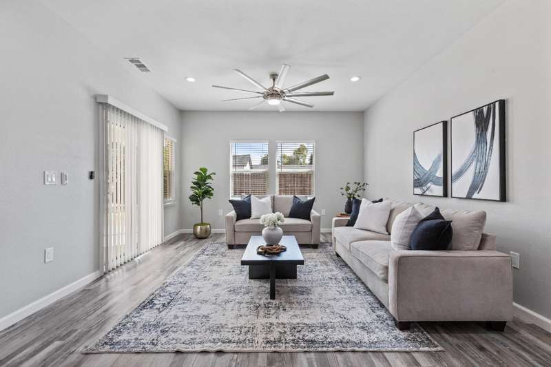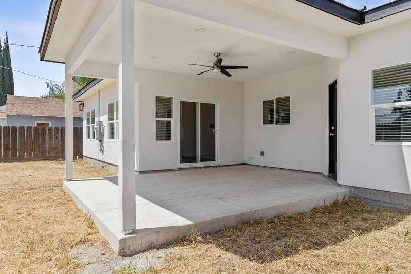 Welcome to your brand new single-story home in the heart of Modesto! This modern 4-bedroom, 2-bath home offers over 2,000 sq ft of living space on a large lot, with solar panels included. Enjoy an open floor layout featuring a stylish kitchen with a large island, ample cabinetry, and seamless flow into the living and dining areas. The design is very airy and bright with modern lighting and finishes throughout. A spacious backyard with a covered patio and ceiling fan, making it perfect for entertaining. Don't miss this stunning new build!