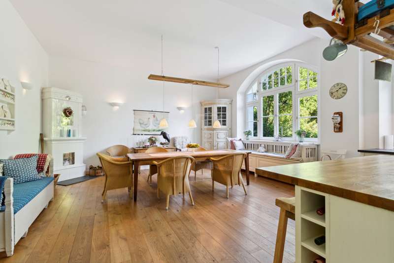 Welcome to the rural idyll of Bodenbach in the Vulkaneifel. You will be greeted from afar by the extraordinary three steeples of the Apolonia parish church. If you delve further into the tranquil village, you soon realize that peace and quiet is not just a word here, but a living reality. This is exactly how the owners of the former village school, which we are proud to present to you today, felt. This is one of the few village schools of its kind within a radius of 200 km. As soon as you open the garden gate and see this beautiful building with its friendly, petrol-colored shutters, you feel miraculously safe and welcome. Many hours of work and numerous experts were needed to make this unique former school building (not a monument) from 1896 shine in its current splendor. And above all, of course, the creativity and courage of the owners - every detail has been lovingly thought through, repaired and designed down to the smallest corner. Anyone who has ever kissed a house like this awake from its slumber will immediately know what is meant. And if you've never tried it before, then you'll feel right at home in the approx. 387 m² of living space. At the time, the former school building was an all-day school and housed first one and later two multi-age classes. The pupils were taught by a teacher who lived on the upper floor.