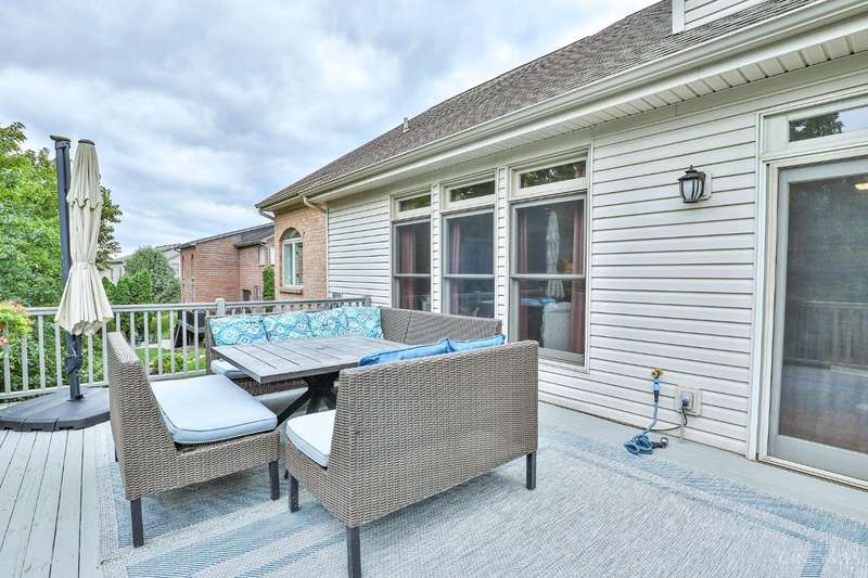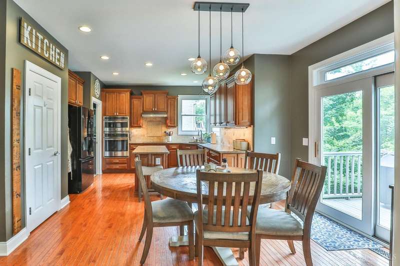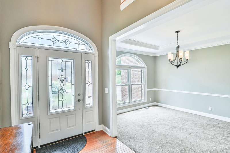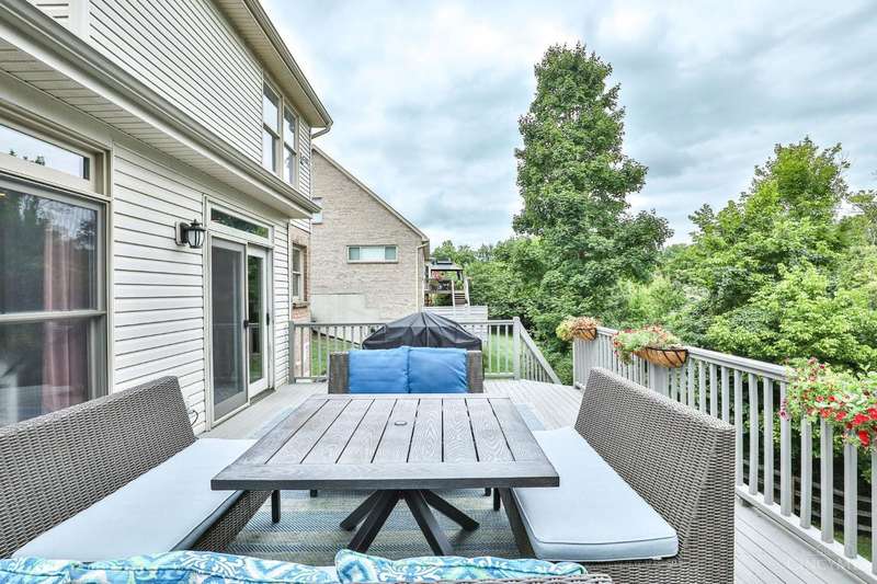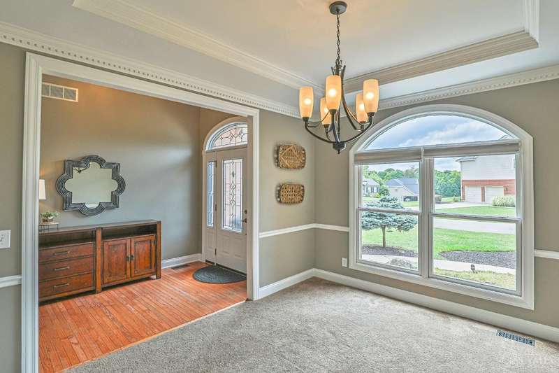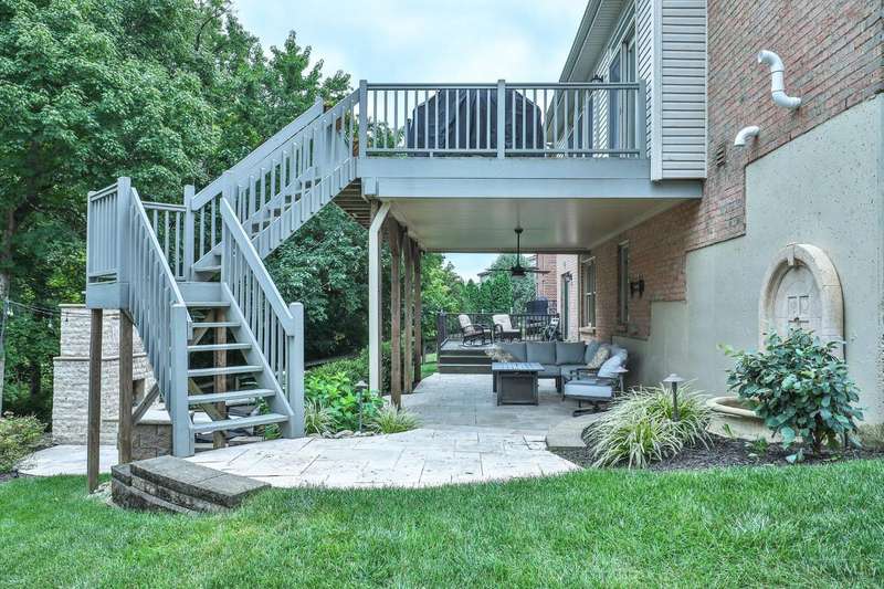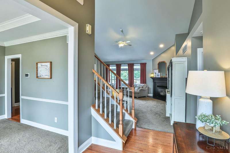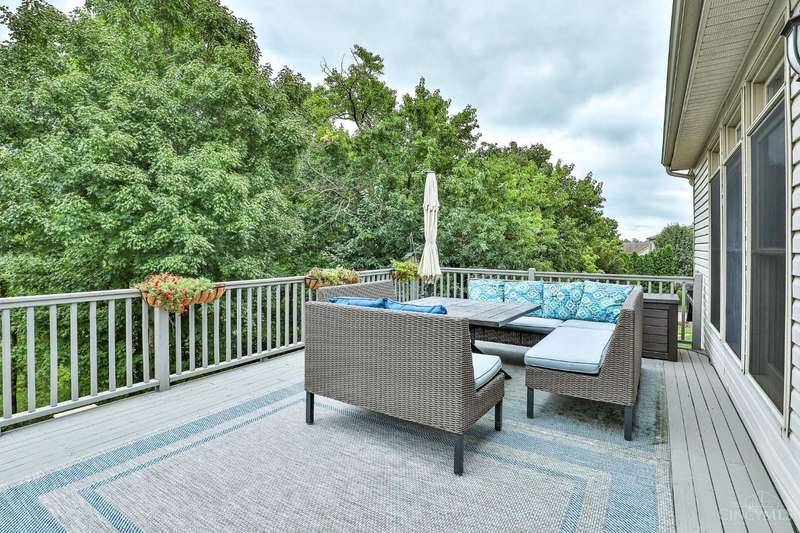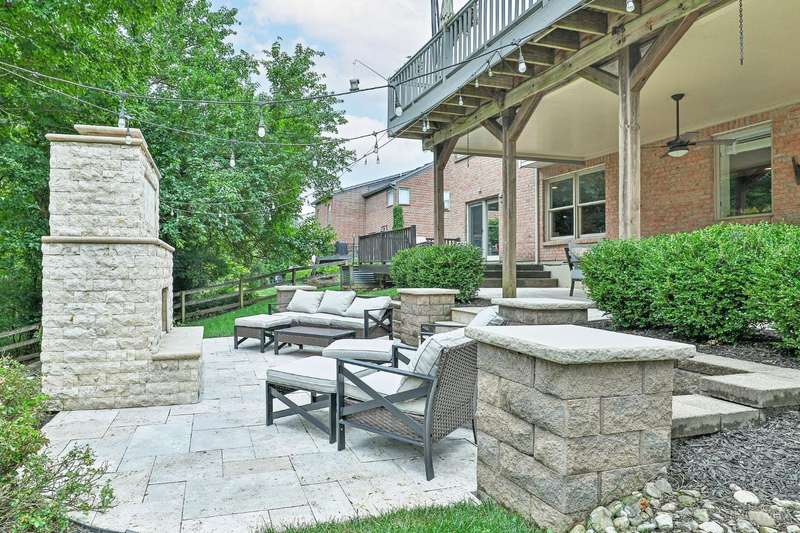 Beautiful 5-bedroom, 3.5-bath home on a private .8-acre lot in a quiet neighborhood with pool. The main-level primary suite features vaulted ceilings, dual walk-in closets, and a large bath. The kitchen boasts granite countertops, island, Rookwood tile backsplash, and custom cabinets. A full walkout basement with 9' ceilings offers endless options with a workshop, rec room, wet bar, bedroom, full bath, and storage. Outdoor living shines with a fenced yard backing to greenspace, travertine patio with fireplace, covered patio, raised garden beds, and built-in storage. Additional highlights: 3 car garage, on-demand water heater, whole-house humidifier, and new HVAC (2023).