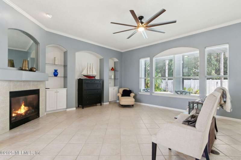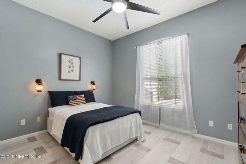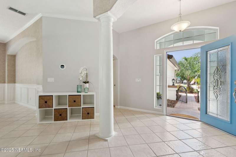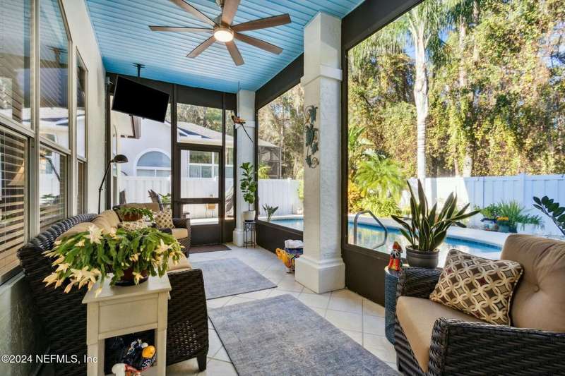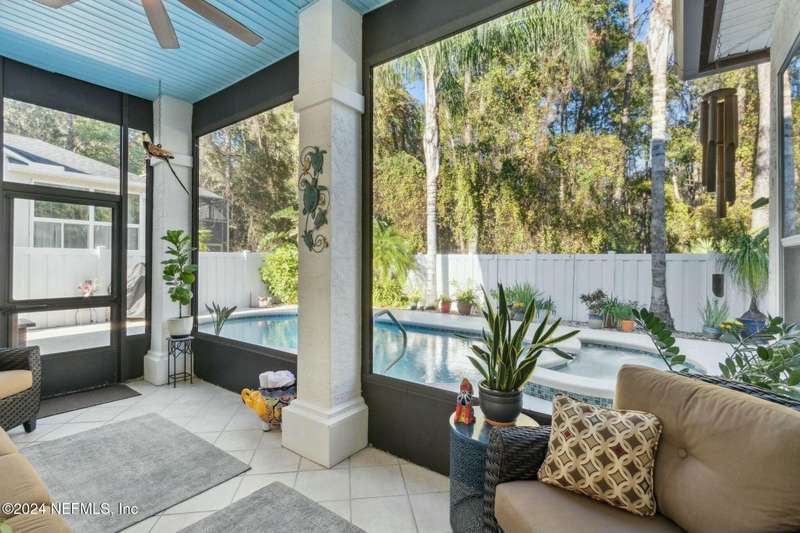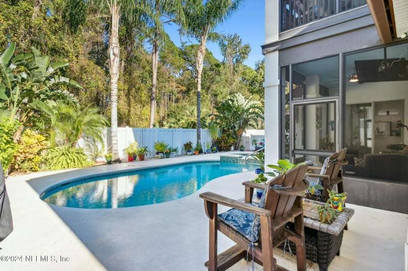 Welcome to your private oasis in Julington Creek Plantation! Beautifully updated pool home offers stylish living spaces, heated in-ground pool with waterfall and lush, low-maintenance courtyard-style backyard.Step inside to discover a split floor plan with spacious secondary bedrooms connected by a Jack-and-Jill bath, a formal dining room, and a bright living area with views of the resurfaced pool. The eat-in kitchen shines with new granite countertops and stainless-steel appliances.Upstairs, the private owner's suite features a serene 3-season porch overlooking the tropical backyard and preserve-perfect for morning coffee Recent upgrades include a new roof (2022), exterior paint, gutters, and pool resurfacing (2023), plus kitchen appliances and water heater (2024).