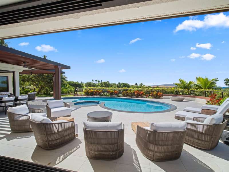 Stunning new offering in Wailea Golf Estates showcasing panoramic views from Kaho?olawe to the West Maui Mountains. Perched on a small knoll with only one neighbor, the home enjoys a wide open green belt along the 18th fairway stretching out before you. Nothing was spared in this top-to-bottom remodel, recently completed with exceptional attention to detail. A deep-blue pool contrasts beautifully against a white limestone deck and a stone fire pit that creates the perfect setting for evening star gazing. Inside, large windows and sliding pocket doors capture the ever-changing hues of the Pacific and daily Maui sunsets. The interiors combine neutral stone, warm wood, and elegant furnishings for a timeless, soothing atmosphere. This home must be experienced in person to truly appreciate its essence. Contact your Realtor® today for a private showing.