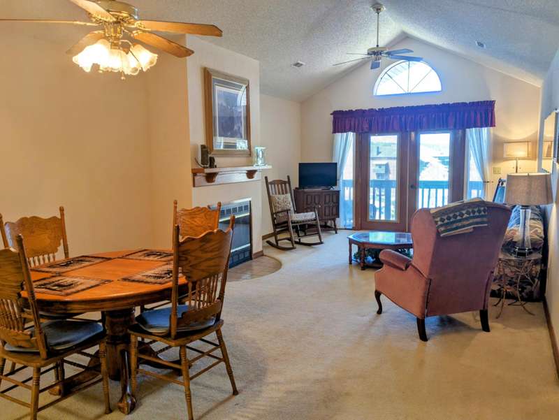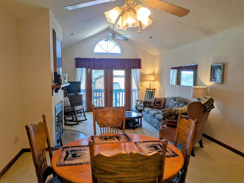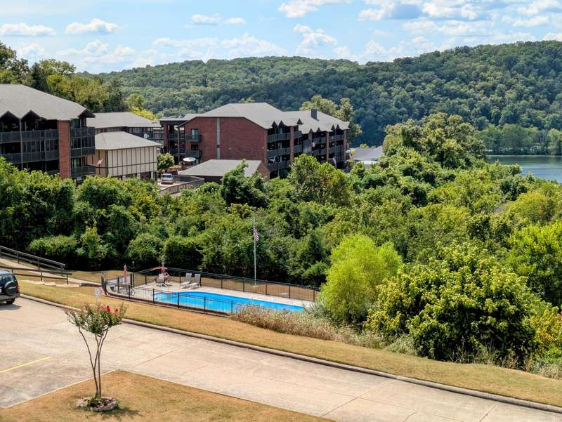 Nestled in the heart of Forsyth, this IMMACULATE, Top-Level LAKEVIEW 2BR, 2BA condo with FIREPLACE and Upper-Level PRIVATE GARAGE is ready and waiting! This lovely condo overlooks lush grounds, surrounding hills, swimming pool and shimmering Lake Taneycomo. This upper-level WALK-IN condo includes garage parking just a few covered steps from your front door. NO STAIRS REQUIRED! Adorned with classic wood millwork and cabinetry, freshly painted walls, updated French doors in living room and master bedroom, Whirlpool frontload washer/dryer; oven/range, microwave; large capacity Kenmore refrigerator, and upgraded York 2021 HVAC, this rare unit has a wood burning fireplace that could easily be converted to electric. It also offers the feel of added space that only comes with vaulted and tray ceilings. Enjoy tranquil views and glorious sunsets from your covered deck with retractable awning. Pull into your private garage, exit through secure entry door and walk across covered walkway all the way to your front door. Garage includes storage closet with partially floored attic space, convenient remote opener and key-pad entry. Relax on the lake, dock or at one of three swimming pools. Feeling social? Join your neighbors around an evening fire pit. Come unwind in a quiet, safe, and friendly lake community just minutes from Branson's entertainment and attractions. Your perfect full or part-time lake retreat awaits without the hassles and chaos of nightly rentals and traffic jams! Offering rare features in a highly rated condo community, this property deserves a look. Don't let this one get away!