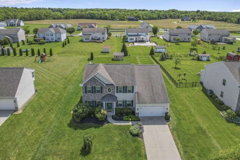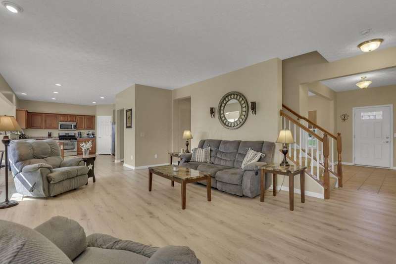 PRICED UNDER MARKET VALUE - INSTANT EQUITY! Check out this expansive two-story home in Harvest Ridge, offering comfort, flexibility, and room to grow. With five generously sized bedrooms, including one conveniently located on the main floor?perfect for a guest suite, in-law accommodations, or a home office?this home provides versatile living. Walk in and notice fresh paint and durable new vinyl plank flooring on the main level. Imagine yourself entertaining in style in the formal dining room or enjoying casual mornings in the bright and inviting morning room off the kitchen. The large great room provides the perfect space for relaxing or gathering with family and friends, and a full basement is ready to be finished?offering limitless possibilities for additional living space, game room, or home gym. Upstairs, the second-floor laundry adds everyday convenience. Primary suite will impress with its size and big bathroom with tub, shower, and dual sinks. Set on nearly a half-acre, this 3000+ square foot home offers plenty of room for outdoor enjoyment, gardening, or relaxing on the brick paver patio.