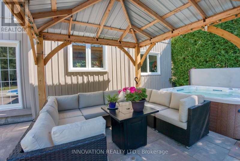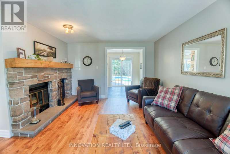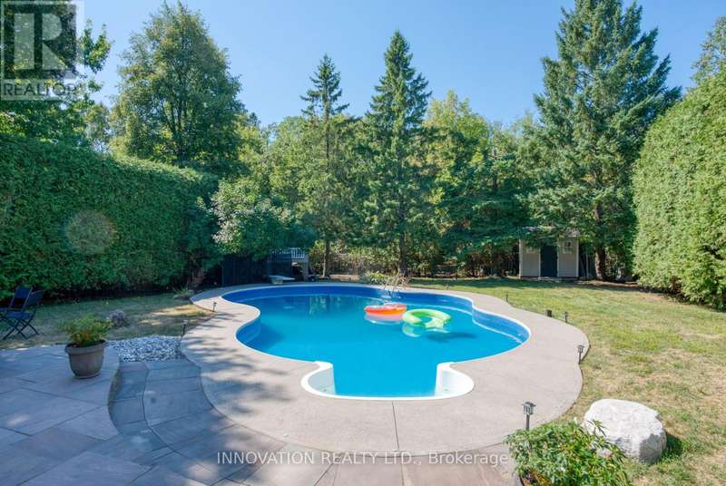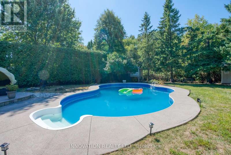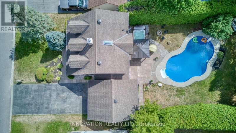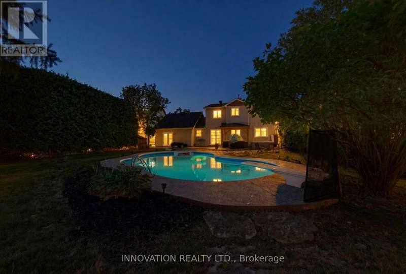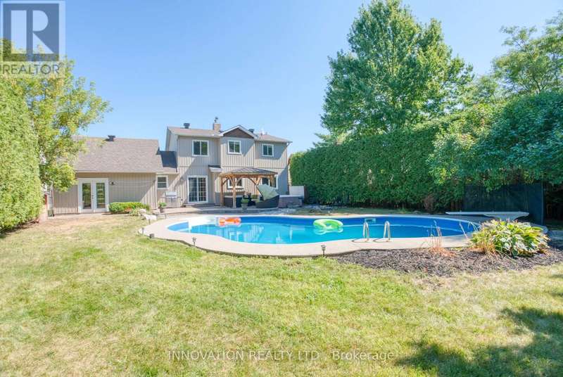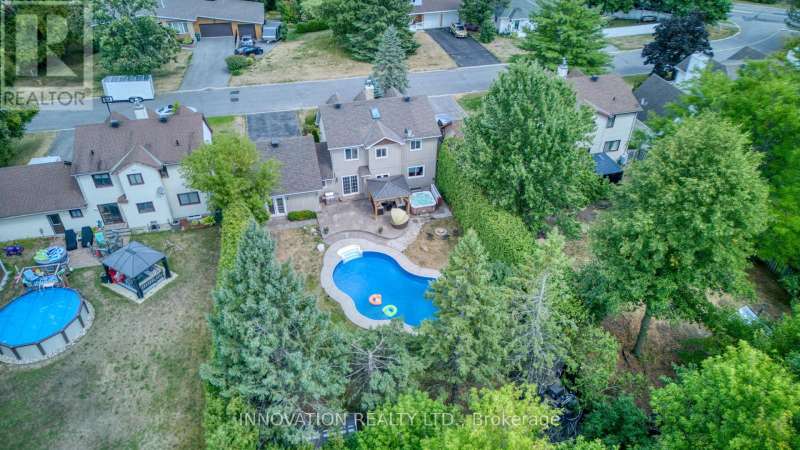 Improved price ! Beautifully landscaped 1986 built family home situated on a desirable quiet street and gorgeous fenced 65.62 x 146.98 ft lot with a large patio area, large pergola , hot tub, inground pool, playhouse and garden shed. Retractable child safety pool fence is also available. No Rear Neighbors ! Privacy +. This home has a wonderful curb appeal with large front porch for your morning coffee.The main floor offers well sized Living Rm ( currently Dining Rm), Dining room ( at present Music rm) & Large Family rm with cozy wood fireplace. Kitchen w/ lots of cabinet space, window over sink & patio door with view of this amazing backyard. 2 pc Powder rm, main floor Laundry rm with new tub & window. Newly refinished hardwood floors on main lv. Wood staircase and skylight greets you at the 2 nd level. Primary bedroom with updated ensuite bath, 2 additional bdrms & family bath. Note the quality window shutters. Basement is fully finished offering a great space for family and visitors. Large Recrm with TV and speakers( included), Den/ home office, 3 pc bath, home gym, storage. Lovely landscaping front & back. Double car garage. The privacy of the backyard w/ mature hedges & trees. Such a wonderful relaxing country feeling upon entry to this exceptional property. Minutes to all amazing Stittsville amenities. 2011 - roof & skylight, 2012- exterior work-1/2 inch styrofoam insulation under new vinyl siding, fusion stone on the front, garage doors. 2020- all interior doors, trim, baseboards replaced on two levels, 2018- basement laminate floor , 2019- new furnace, 2020- new tile in the kitchen, powder rm, laundry. 2020- new patio door. 2024- new pool liner 2025- new tile in front entry, refinished hardwood flooring, replaced window panes in front upstairs windows & music rm, entire house painted, front porch sanded & stained. Must be visited -real show stopper- backyard oasis. Country living in the city at its best. 24 hr irrevocable on offers. (id:6509)