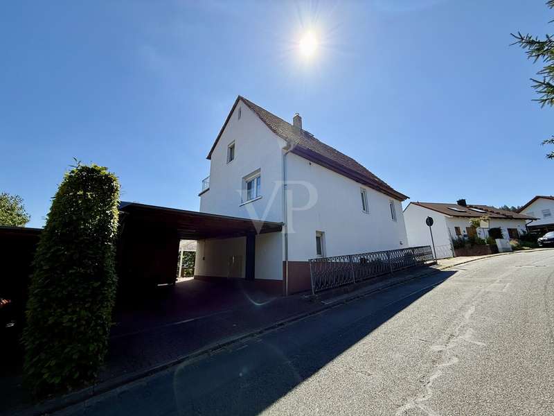 This beautiful detached house is situated in a prime location in Erbach's ''Westring'' with far-reaching views over the town. The generous living space of approx. 146 m² and a plot of 454 m², provides enough space for the whole family. On the ground floor, in addition to the ''cellar rooms'', there is a room that can be used in a variety of ways, whether as a home office, guest room or teenager's room. The upper floor extends to approx. 70 m² with everything you need for your daily needs. A large living/dining room, a bathroom, a kitchen and an air-conditioned passage room, which can be used as a home office or bedroom. The converted top floor has approx. 49 m², where there is a further bathroom with bathtub and two bedrooms, both with access to the spacious terrace with a wonderful view over Erbach. The ceiling was partially suspended at approx. 190 cm, but this can be removed again (see pictures). A pointed arch with an insulated roof completes the attic. The house is in need of renovation and also boasts additional usable space: In addition to the living areas, there is a spacious cellar room and an insulated, boarded attic. Another plus point is the practical carport, which offers direct access to the house and garden. The lovingly landscaped garden offers plenty of greenery and impresses with direct access to both the house and the two parking spaces. A gentle slope, which is by no means too steep, gives the property a pleasant structure and slight dynamism. For hobby gardeners, there is a practical greenhouse as well as several nashi trees and a cherry tree, which further enrich the garden. The windows were converted to double-glazed plastic windows in 2004. The oil central heating was also renewed in 2004 and works reliably. The property offers plenty of potential for individual design and value appreciation. The detached house enjoys the advantages of a first-class location combined with a comfortable, family-friendly living concept.
