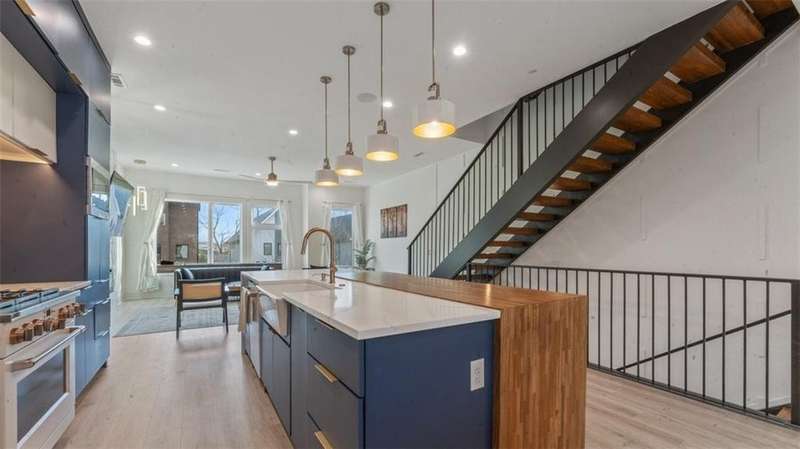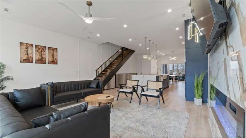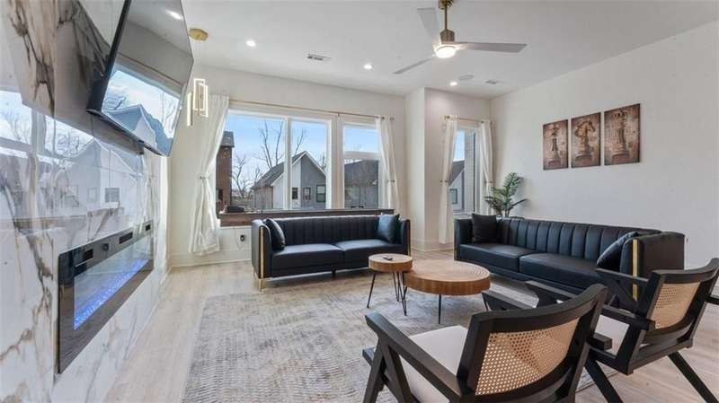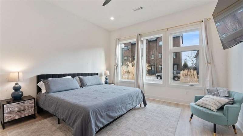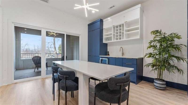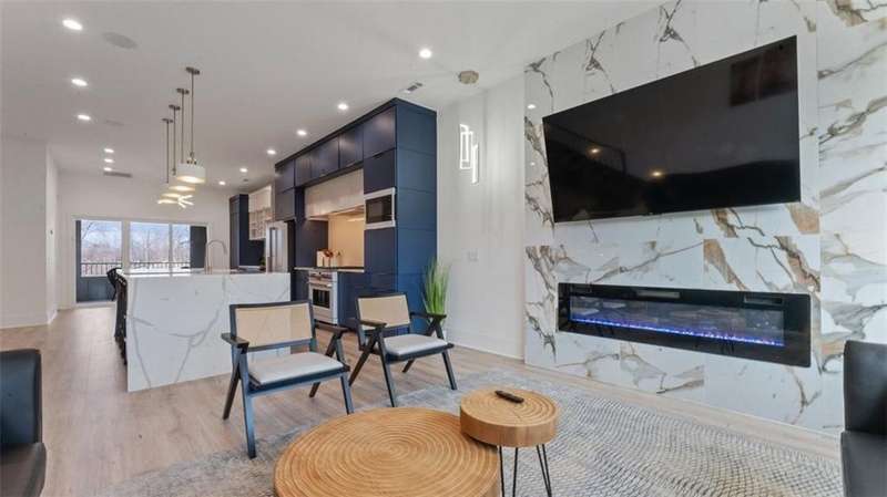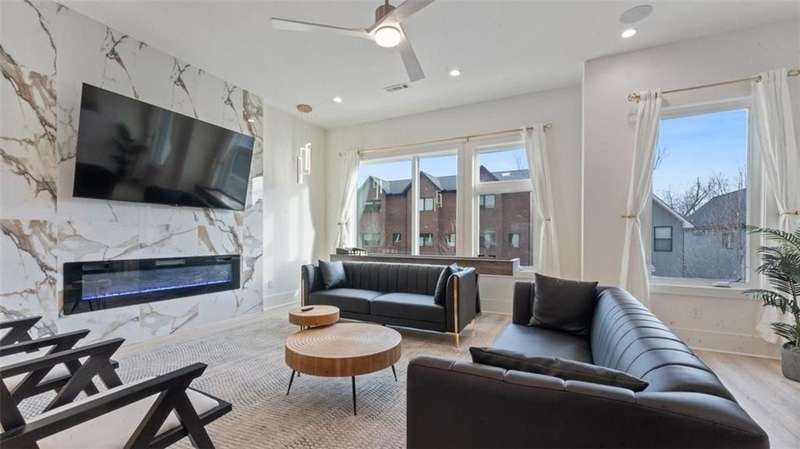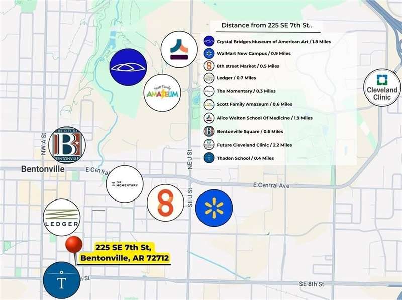 Experience modern luxury in the heart of Downtown Bentonville with this stunning townhome, just 0.9 miles from the new Walmart Campus. Enjoy the ultimate lifestyle—walk or bike to world-class art, dining, culture, and renowned mountain biking trails. This home exudes sophistication with a spacious living area featuring a striking wall of windows, a sleek linear electric tiled fireplace and open floorplan. The chef’s dream kitchen boasts a custom waterfall island, floor-to-ceiling cabinetry, quartz countertops, high-end Café appliances, a wet bar/beverage station, and a formal dining room. The primary suite upstairs offers a private retreat with balcony, LVP floors, a spa-like ensuite with a floating vanity, a walk-in shower with rain head and jets, and a custom walk-in closet. Two secondary bedrooms on the 1st level, living/kitchen space on the 2nd level and primary bedroom and secondary bedroom on the 3rd level. Complete with a two-car attached garage, this home is the perfect blend of elegance and functionality.