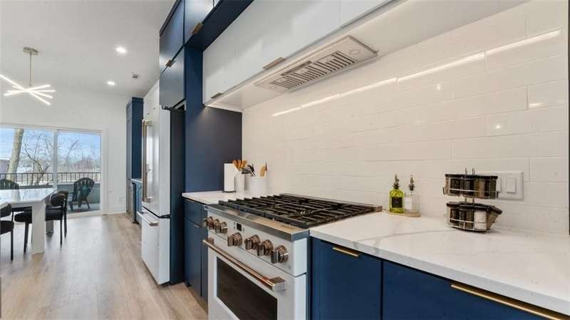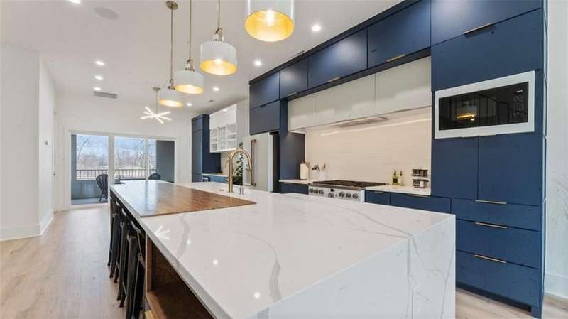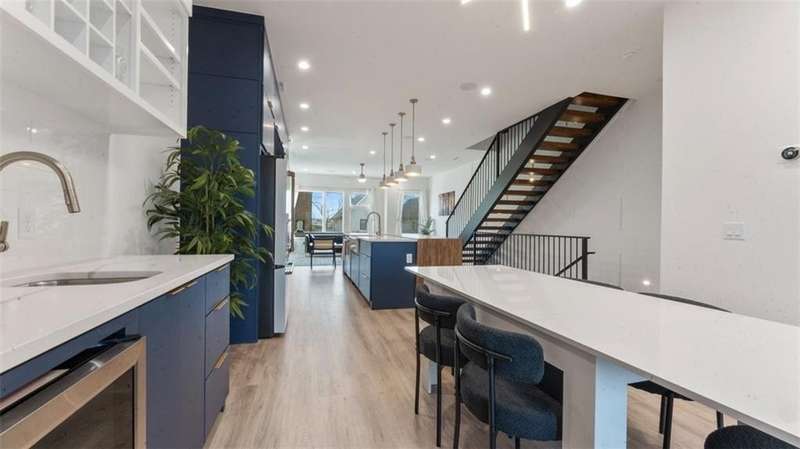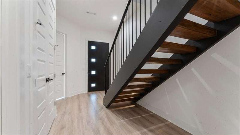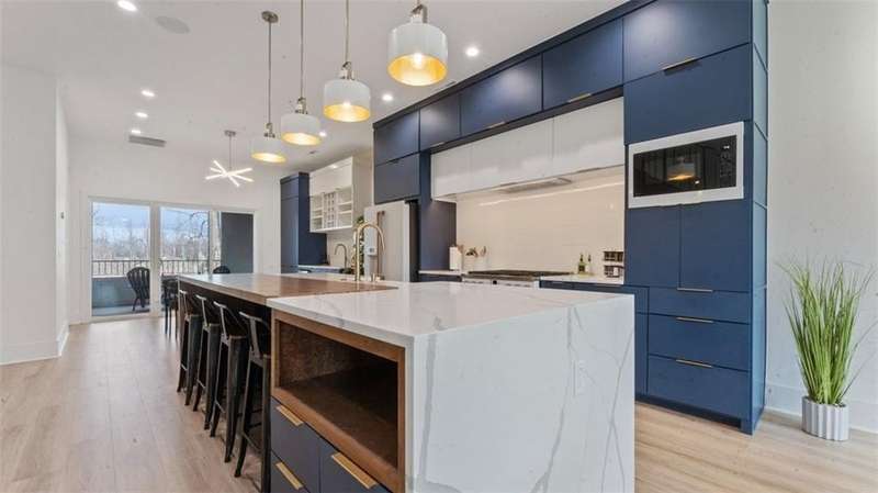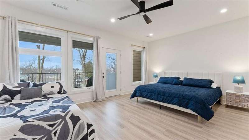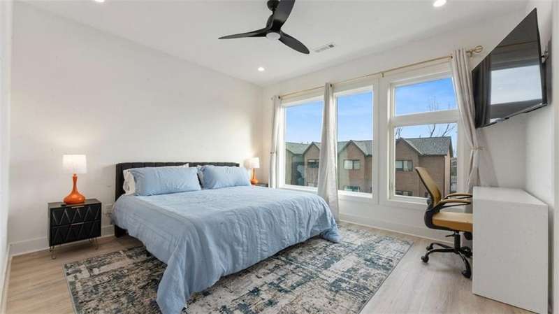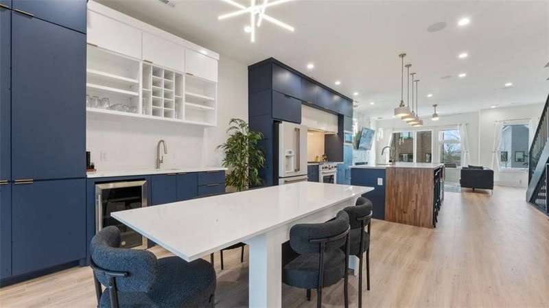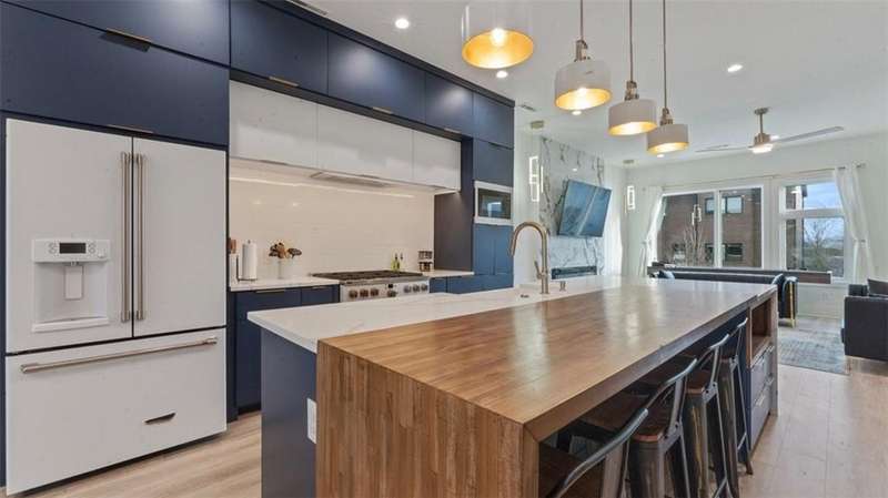 Experience modern luxury in the heart of Downtown Bentonville with this stunning townhome, just 0.9 miles from the new Walmart Campus. Enjoy the ultimate lifestyle—walk or bike to world-class art, dining, culture, and renowned mountain biking trails. This home exudes sophistication with a spacious living area featuring a striking wall of windows, a sleek linear electric tiled fireplace and open floorplan. The chef’s dream kitchen boasts a custom waterfall island, floor-to-ceiling cabinetry, quartz countertops, high-end Café appliances, a wet bar/beverage station, and a formal dining room. The primary suite upstairs offers a private retreat with balcony, LVP floors, a spa-like ensuite with a floating vanity, a walk-in shower with rain head and jets, and a custom walk-in closet. Two secondary bedrooms on the 1st level, living/kitchen space on the 2nd level and primary bedroom and secondary bedroom on the 3rd level. Complete with a two-car attached garage, this home is the perfect blend of elegance and functionality.