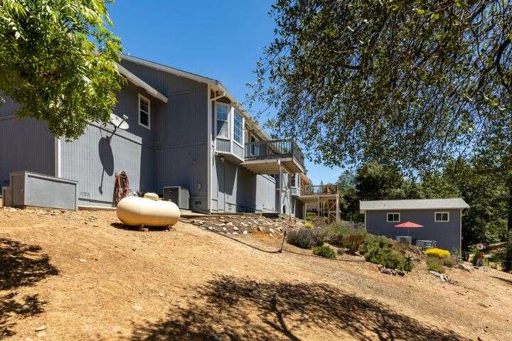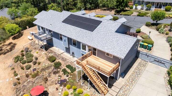 Elegant Updated Single-Story home on over an Acre with shop, OWNED Solar & modern Upgrades! Welcome to this beautifully maintained 4-bedroom, 3-bathroom single story home nestled on 1 plus acres of peaceful, usable land. This move-in ready property offers the perfect blend of comfort, function, and energy efficiency--with solar, a newer roof, and a newer HVAC system providing peace of mind and lower utility bills. Step inside to an inviting floor plan with spacious living areas, a well-appointed kitchen, and generous natural light throughout. The expansive primary suite offers privacy and relaxation, while three additional bedrooms provide plenty of space for family, guests, or a home office. Enjoy a detached shop with new mini-split system--ideal for a workspace, studio, or potential ADU (appx 500 sq ft) . The property includes a private well, a seasonal stream (with occasional waterfall), & is fully fenced, offering both privacy and room to roam. The yard is meticulously landscaped creating a serene outdoor setting perfect for relaxing or entertaining. Room for RV parking, gardening & animals. Located on a quiet dead end street yet minutes to Hwy 50, stores and hospital. Don't miss your chance to own this rare gem that combines rural tranquility with modern convenience