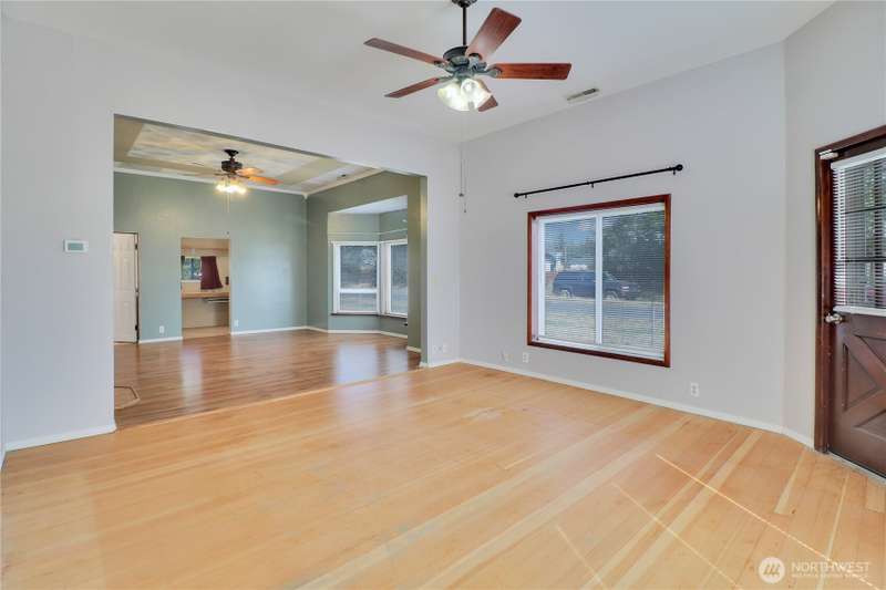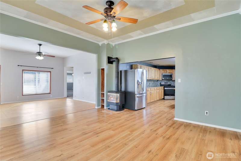 Price Reduced! Wonderful single story home with large shop! Home is comfortable & welcoming w/9ft ceilings, 3 bedrooms + office & 2 bathrooms. Spacious kitchen w/newer stove, microwave, eat-in island & walk-in pantry. Primary bedroom w/bathroom. Hardwood floors, gas freestanding stove, newer furnace. Heat pump (air conditioning). Fully fenced giant corner lot w/shop w/separate flex space, carports, storage buildings, RV parking, raised garden area & more. 2 septic systems. Steps from downtown Rainier & walking distance to Yelm/Tenino trail. Easy access to JBLM & freeway. Buyer & buyer's agent to verify all information to own satisfaction.