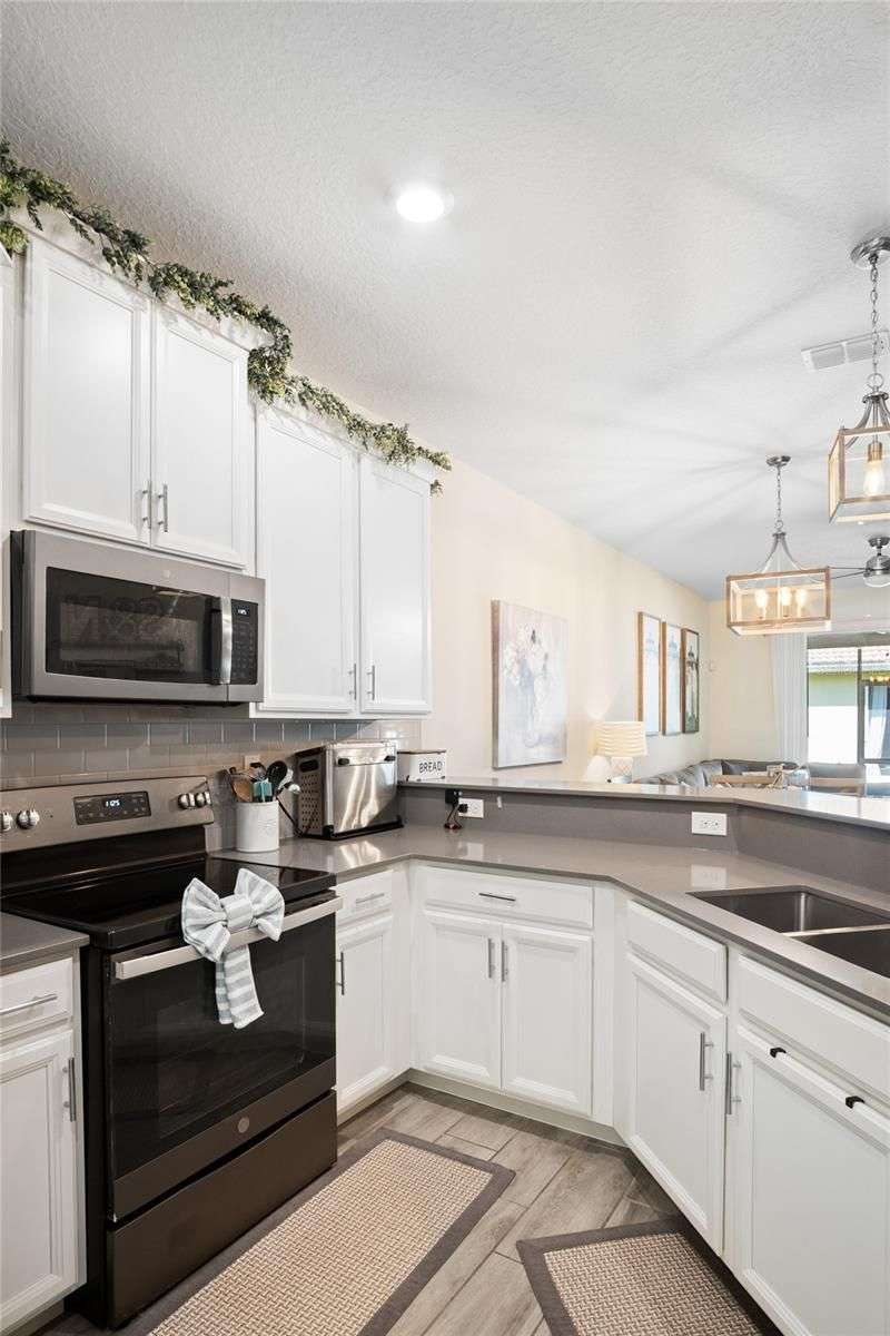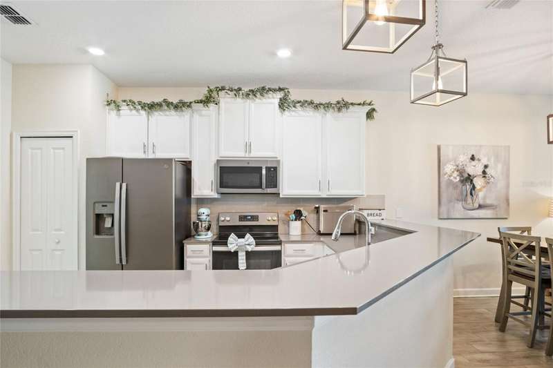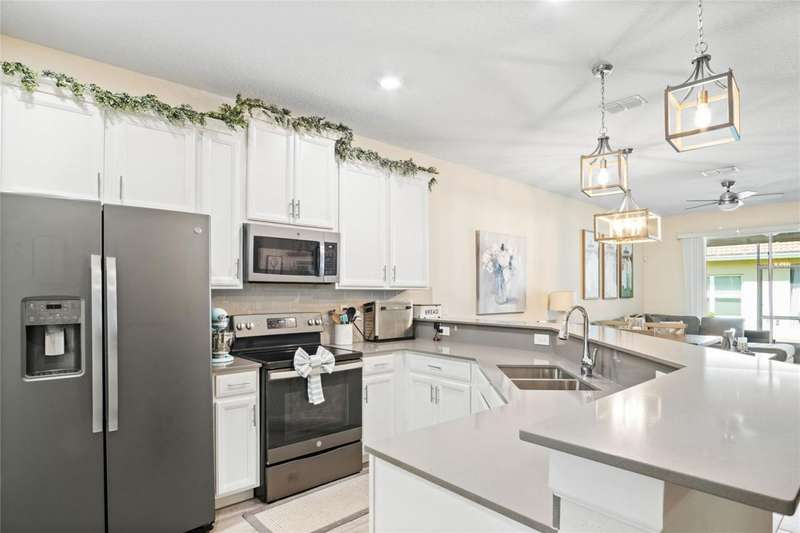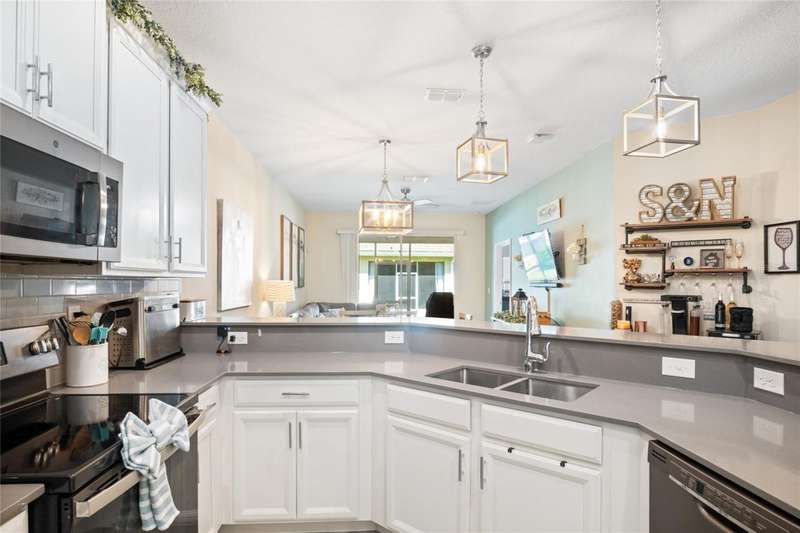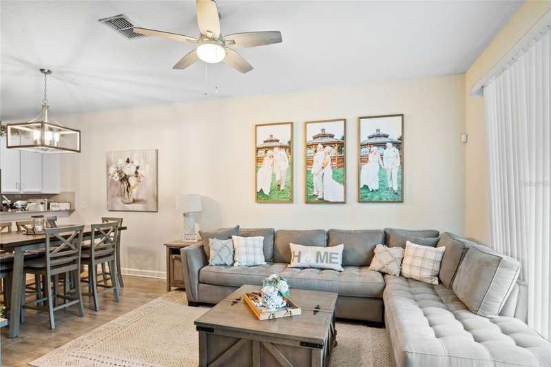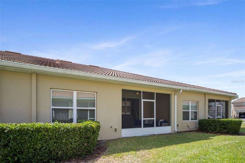 Welcome to your ideal retreat in Citrus Ridge! This immaculately clean and stunning villa offers 2 bedrooms, 2 bathrooms, and a versatile bonus room/den, perfect for your personalized space. Step inside onto luxurious wood plank tile floors that guide you through the entrance, kitchen, dining room, family room, and bonus room. The kitchen is a chef's dream with sleek quartz countertops, stainless steel appliances, a convenient closet pantry, and a nearby storage closet that leads to the laundry room and garage. The primary bedroom boasts a spacious walk-in closet and an en-suite bathroom featuring double sinks and a refreshing shower stall. Relax and unwind on the screened lanai with your favorite cup of coffee, enjoying the serene surroundings. Community amenities abound with the Plaza Clubhouse offering a restaurant, gym, 2 pools, hot tub, sauna, pickleball courts, and a bocce ball court. Additional perks include access to the North Pool, outdoor gym, playground, dog park, tennis court, and exclusive membership to the golf club. For added enjoyment, the Oasis Clubhouse features a Waterpark, enhancing your leisure options. Basic lot landscaping, cable, and internet are included, ensuring convenience. Plus, indulge in the Plaza Restaurant with a prepaid food minimum covered by the monthly assessment. Conveniently located near restaurants, shopping centers, and amusement parks, this property offers the perfect blend of comfort and entertainment. Take advantage of the assumable loan opportunity and embrace a lifestyle that blends comfort with vibrant community living.