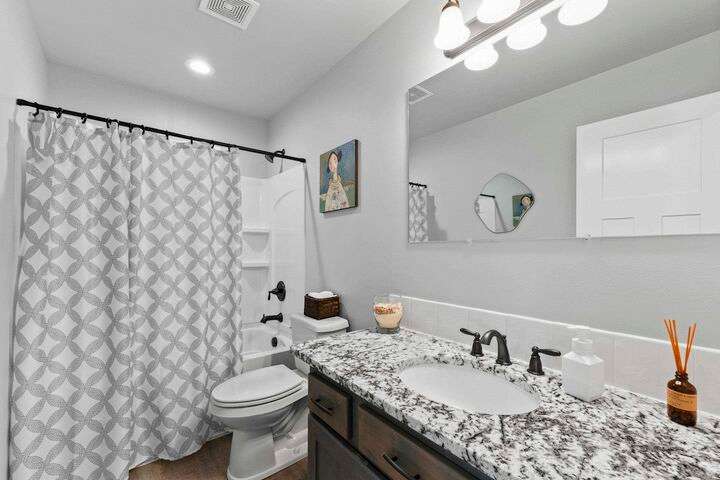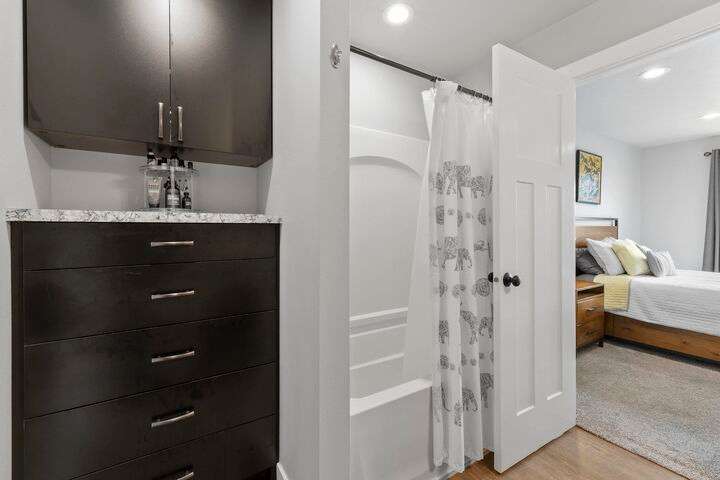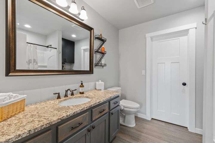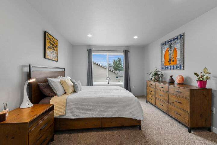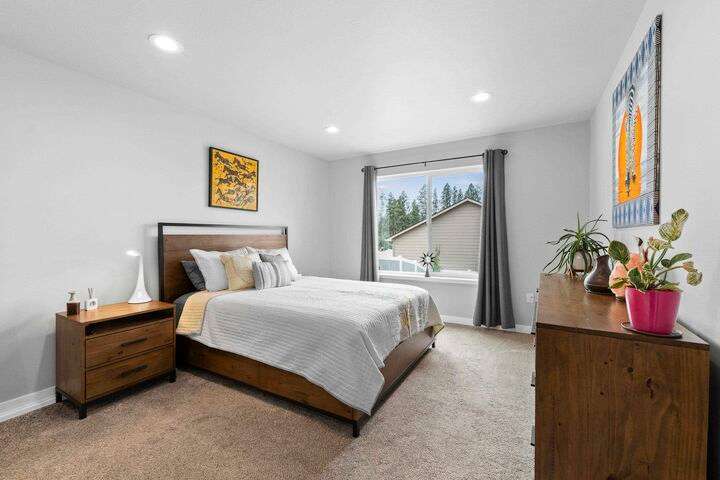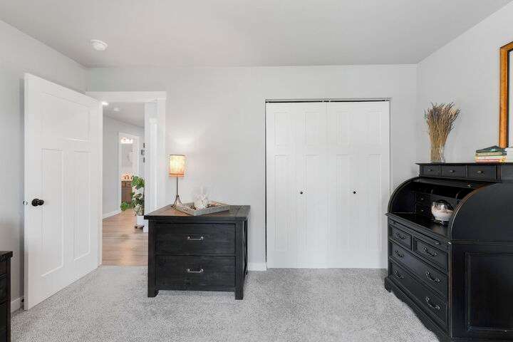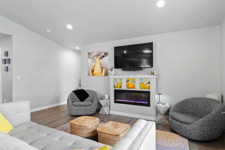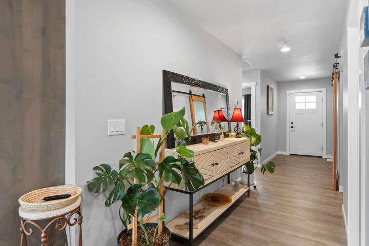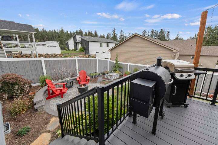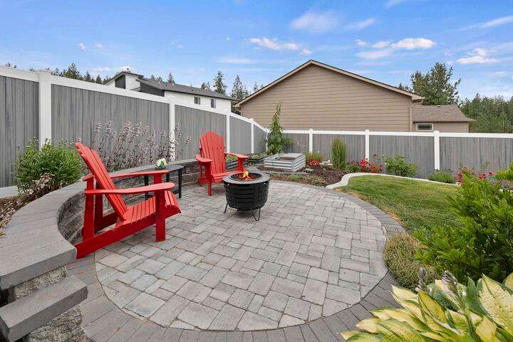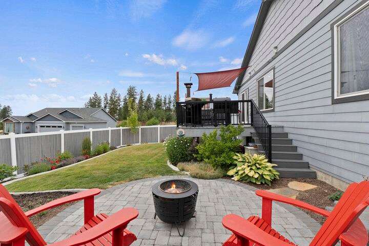 Welcome home to Timberlane Terrace, a sought-after South Valley community! This all 1 level zero step entry craftsman rancher offers the ease of main level living with an open floor plan, a great room w/a vaulted ceiling, LVP flooring and a zero-scape front yard. The kitchen features wood cabinetry w/a built-in pantry, under-mount lighting over the granite counters, a tiled backsplash, stainless steel appliances, center island with seating and is open to the informal dining and great room. The great room lends spacious seating w/a cozy electric fireplace. There is a bright primary suite & en-suite w/a walk-in closet plus 2 additional bedrooms and 1 full bath. The laundry room has a sliding barn door, utility sink, great storage & access to the 2 car garage. Take the sliding glass door out onto the composite decking and look out over the new gorgeous patio and yard complete w/concrete curbing, spray system, drip lines, 3 raised garden beds and privacy fencing. Zoned for coveted CV school district.