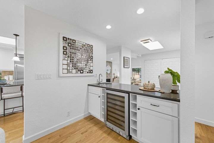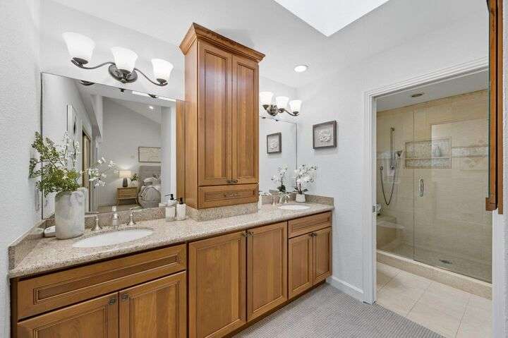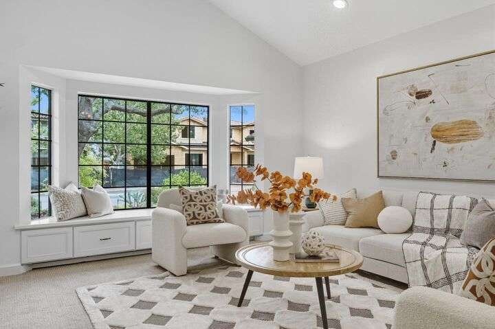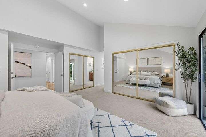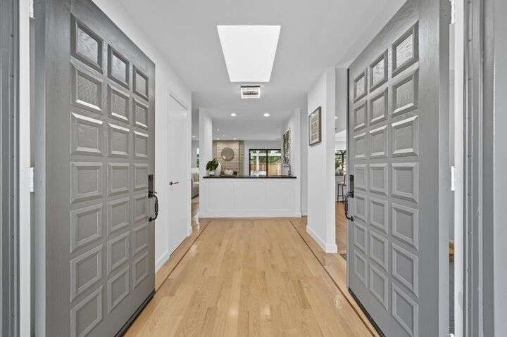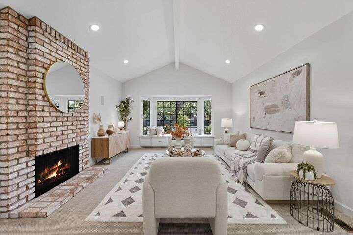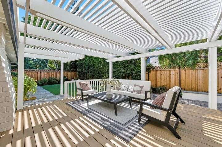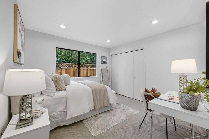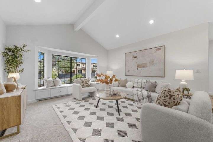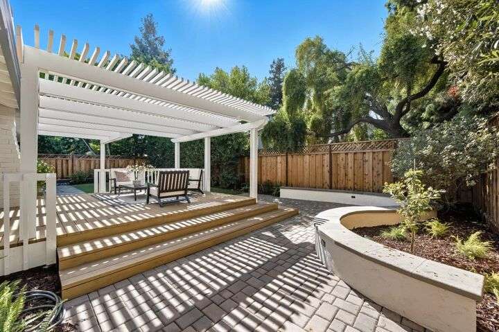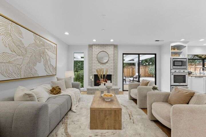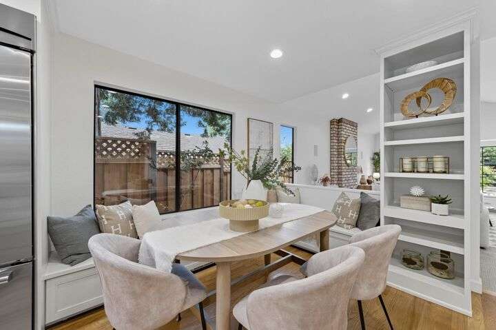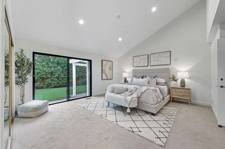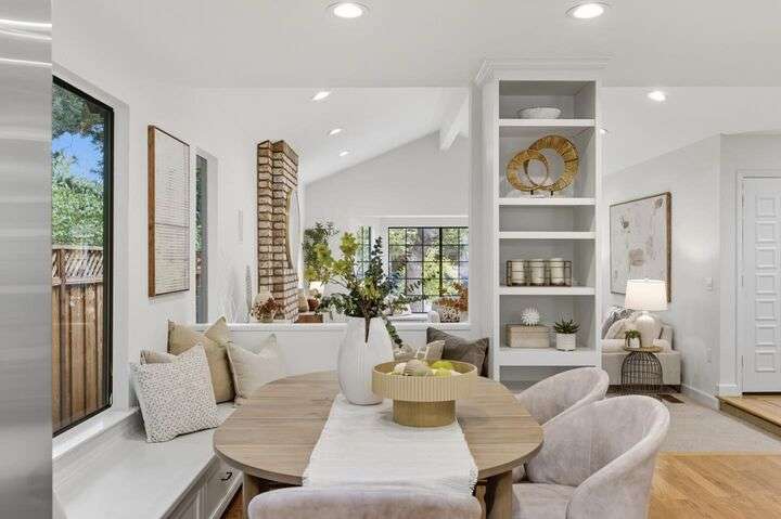 Stunning four-bedroom, two-and-a-half-bath showcase home brimming with natural light and thoughtful updates! Soaring vaulted ceilings, six skylights, and a remodeled kitchen with bay window, layered lighting, and cozy window seat create an airy, inviting atmosphere. The ideal single level layout includes a separate living room with charming window seats plus a great roomstyle kitchen family room, perfect for modern living and entertaining. A rare three-car garage and abundant storage add convenience. Step outside to a sun-drenched deck with pergola, a low-maintenance yard with artificial turf, and mature fruit treesMeyer lemon, pomegranate, and Anna applealongside a stately front oak tree. Perfectly located just steps from parks like Oak Elementary and its park, with easy access to Cooper & Cuesta Parks, Stevens Creek Trail, El Camino Hospital, and highways 85/280yet wonderfully peaceful and quiet. Welcoming neighbors, and possible history as the communitys showcase model make this home truly one-of-a-kind, offering the very best of Mountain View living.