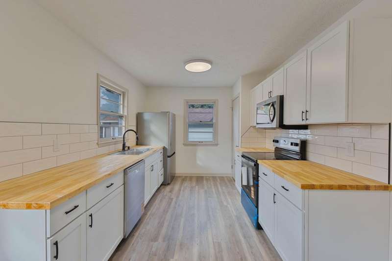 Welcome to this beautifully refreshed 3-bedroom, 1-bath home on a corner lot! Step inside to find new carpet, fresh paint, and stylish light fixtures that create a warm, inviting feel throughout.The brand-new kitchen features modern finishes and plenty of cabinet space, making everyday cooking and entertaining a breeze. The partially fenced yard offers both openness and privacy, perfect for relaxing outdoors or enjoying a bit of extra space.Additional highlights include off-street parking, a 1.5-car detached garage, and rough-in plumbing in the basement--ready for your future expansion ideas.This move-in ready home combines comfort, updates, and potential in one great package. Don't miss your chance to see it in person!
