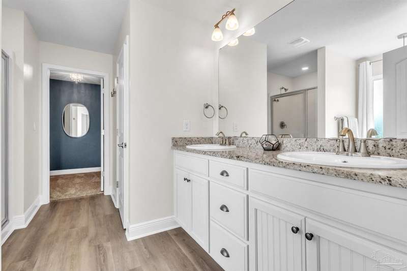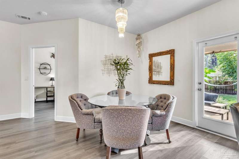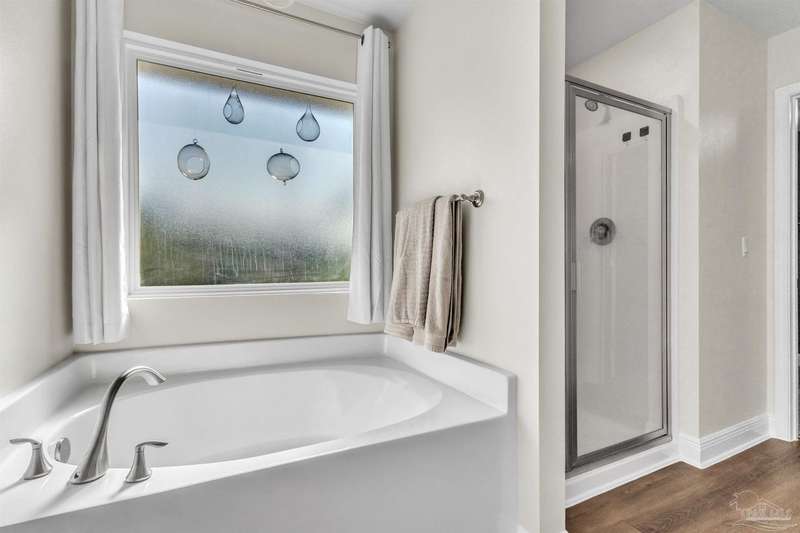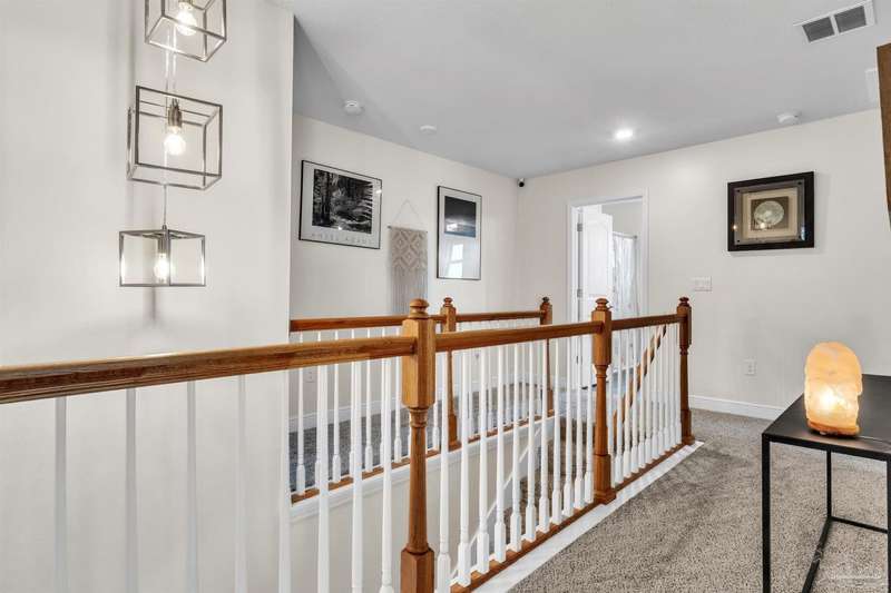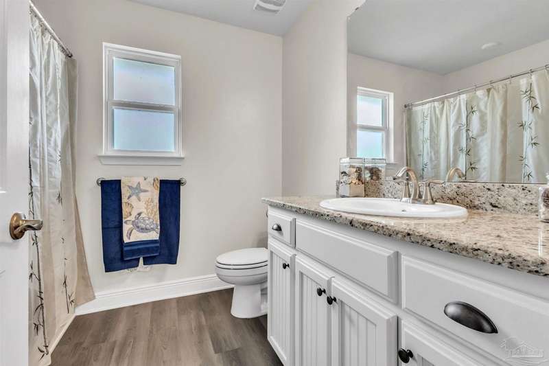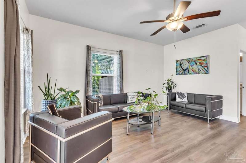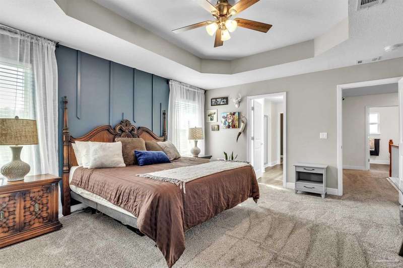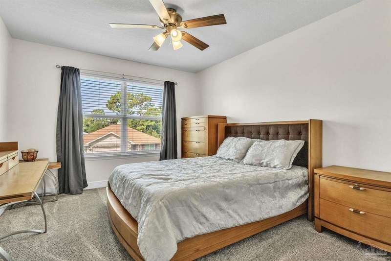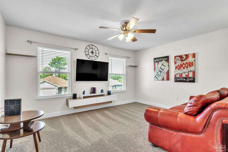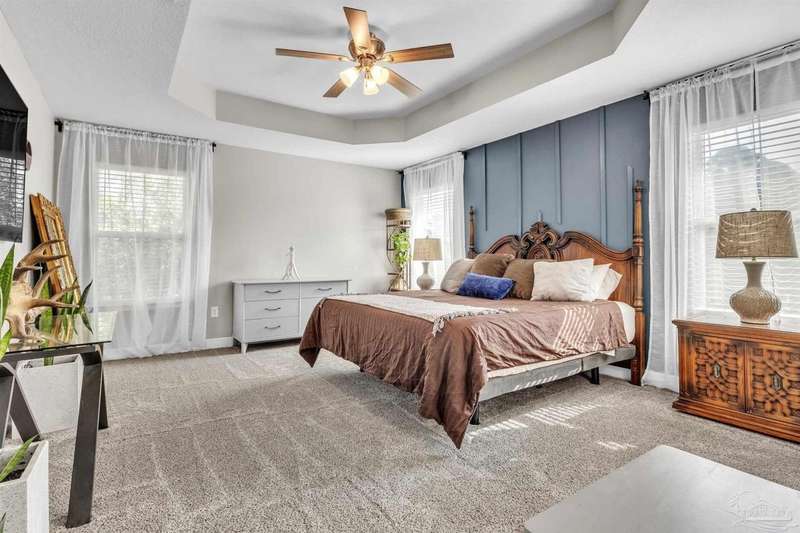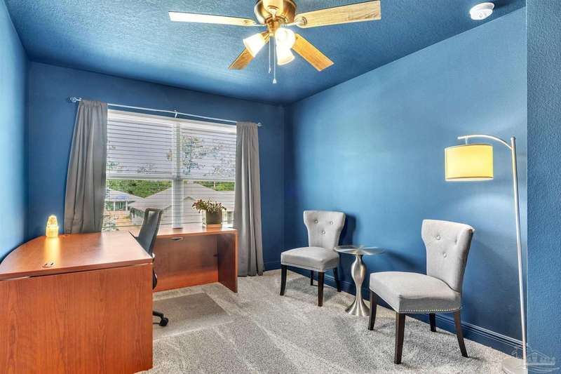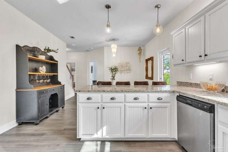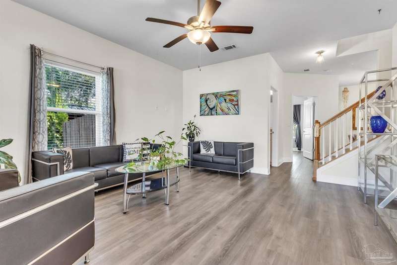 Better Than New! Impeccable Gulf Breeze 4BR/3BA/2-Car Retreat Move right in to this upgraded home in a quiet, one-street neighborhood. The fully fenced backyard is a tropical oasis with over 50 subtropical and edible plants, including multiple banana varieties, pineapple, berries, fig, olive, loquat, elderberry, and more. Canary, Silvester, Pindo, Sabel, Saw, and Sago palms create a resort feel, while a modern wood and steel pergola offers the perfect space for entertaining or relaxing. Designed for beauty and ease, the landscaping is low-maintenance and climate-ready for ease of care year-round. Inside, windows fill the home with natural light, highlighting LVP flooring in main areas, plush new carpet, and upgraded LED lighting throughout. The perfect floor plan for multi-generational living features a downstairs guest suite/office with full bath, bonus loft upstairs, and a spa-like master suite with soaking tub, shower, dual vanities, and huge closet. The kitchen boasts granite countertops, stainless smart refrigerator, smooth-top range, stainless appliances, breakfast bar, and walk-in pantry. Extras include a Nest thermostat, security cameras, sprinkler system on private well, transferable WDO bond. Convenient to A-rated schools, award-winning beaches, East Bay Trail, parks, golf, shopping, dining, and military bases.