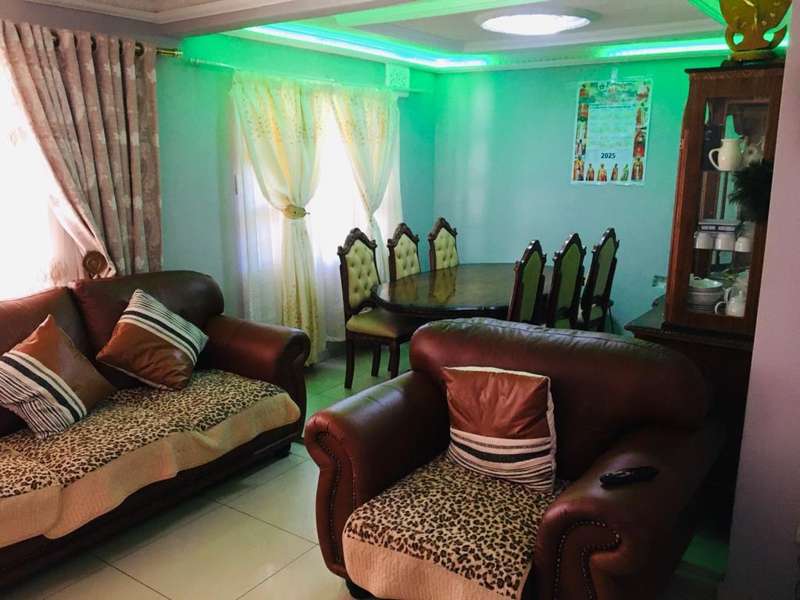 This is a spacious and well-designed single-story house perfect for family living. The home features three bedrooms, including a master bedroom with an ensuite bathroom for added privacy and comfort. The remaining bedrooms are conveniently located near a shared toilet and bath, ensuring functionality for family or guests. The house boasts a well-appointed kitchen and that flows seamlessly into the dining area, creating a warm and inviting space for meals and gatherings. Adjacent to the dining area is a comfortable sitting room, ideal for relaxation or entertaining guests. A garage is included, providing secure parking for one vehicle, along with an additional carport for extra parking or shade. The property is set on a big yard, offering ample outdoor space for gardening, recreation, or future expansion. This home combines practicality and comfort, making it an excellent choice for a growing family or anyone looking for a functional and attractive living space.