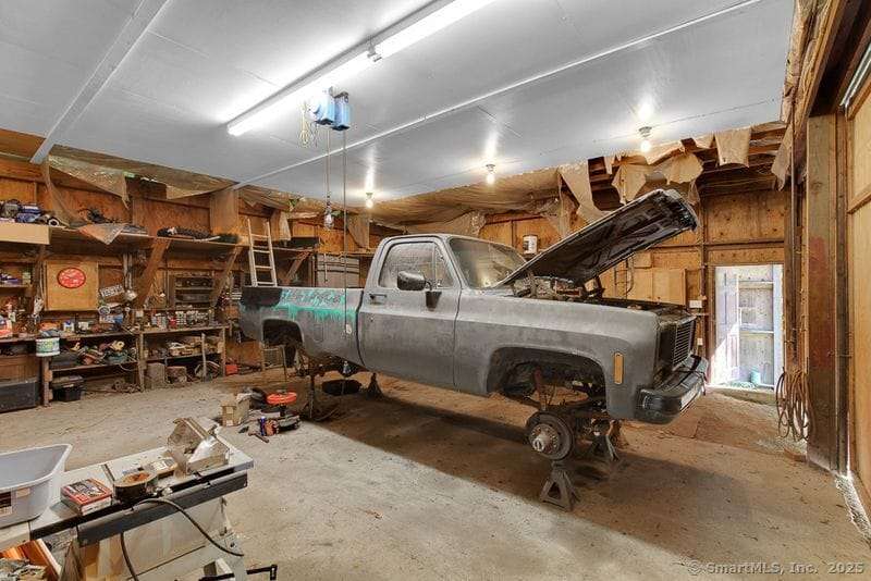 Historic Estate with Pond, Barns and 12.7 Acres of Natural Beauty - Step into a piece of New England history with this exceptional 12.7-acre estate, featuring a historic sea captain's home originally built in Mystic and relocated to Bethlehem in 1961. Rich in heritage and thoughtfully updated with newer roof and mechanics, the home offers three spacious bedrooms, including a primary suite with a fireplace and bath; the house has a total of two and a half bathrooms. The original paneled living and dining rooms include built-in cabinetry and corner hutches, complemented by wide pine flooring, original interior doors, each with wood fireplaces for a total of three working fireplaces in the home. The property showcases a stunning natural setting with open fields, wooded walking trails, professionally maintained gardens supported by a full irrigation system and two wells. A spring-fed koi pond features a sandy beach, dock, and a custom-built outdoor kitchen pavilion crafted with wood harvested from the land. The pavilion is equipped with a working sink, electricity, and a water tank, making it perfect for outdoor entertaining. Additional improvements include two barns suitable for animals, equipment, or creative use, as well as a detached two-car garage with ample storage. A designated riding area makes this property ideal for horse enthusiasts.