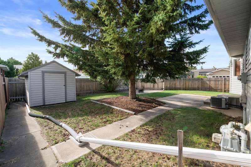 Nestled in the desirable community of Victoria Park, this spacious 5-bedroom, 3-bathroom bungalow offers the perfect blend of comfort and functionality for family living. Located close to a park and golf course, the home features an open-concept floor plan with beautiful hardwood flooring and a large front window that floods the living room with natural light. The formal dining room is perfect for entertaining, while the country-style kitchen includes a practical dinette area that overlooks the back patio and yard. The main level hosts a generous primary bedroom with a 3-piece ensuite, two additional bedrooms, and a full 4-piece bathroom. The fully finished lower level expands the living space with a cozy family room, two more bedrooms, a 3-piece bathroom, laundry area, storage, and the added comfort of in-floor heating. Completing the home is a finished double attached heated garage, air conditioning, landscaped and fenced yard, garden shed, and a parking pad ideal for an RV or extra vehicle. This property is a fantastic opportunity!