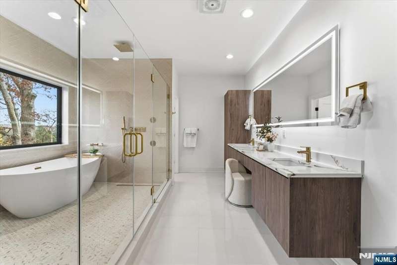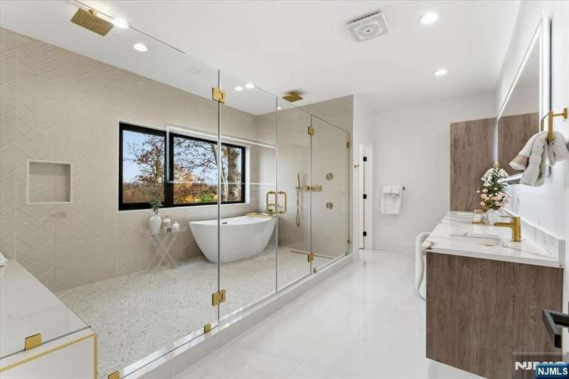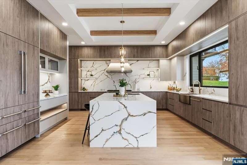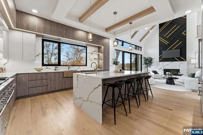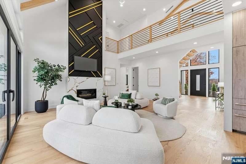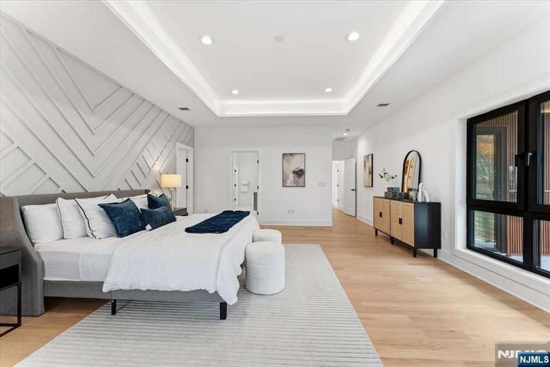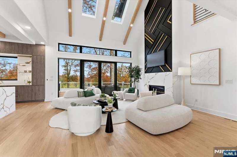 Experience Modern Luxury Redefined in this Stunning Masterpiece, Built and Designed by the renowned NJGCB, an award winning leader in Modern Architecture. Nestled at the end of a quiet cul-de-sac, this New Construction home offers up both privacy & breathtaking water and golf course views. Thoughtfully designed w/ exceptional craftsmanship, this custom home features 6 beds, 6.1 baths, 3 Car spanning over 6,700 sq ft of finished living space. Grand foyer welcomes you with massive floor to ceiling windows, floating staircase & herringbone HW floors. The heart of this home is your gourmet kitchen, where every element was meticulously crafted. Professional grade SS appliances, an abundance of sleek custom cabinetry, center island & walk-in Pantry. Kitchen opens to an impressive 2 story Family Rm w/gas FP, soaring ceilings, skylights & oversized sliding doors leading to outdoor deck, perfect for Entertaining. Elegant butler's pantry connects kitchen w/ Formal Dining Room, blending luxury with functionality. A First Floor Guest Suite offers convenience & accessibility. A beautifully appointed Primary Retreat w/ Covered Balcony, Custom Closets & Spa Inspired Bath w/dual showers & soaking tub. Three additional En Suite Beds & Laundry. Above Ground walk-out basement, filled with sunlight includes Media Rm, Bedroom, Bath, Gym, Office, Wet Bar & Rec Room. Two sets of Sliding Doors leads to paver patio & fenced in yard w/room & approvals for future pool. Luxury Living at its Best.