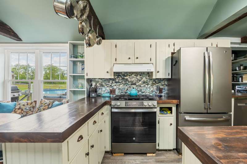 This beautifully updated 3-4 bedroom, 2-bath home offers the perfect blend of historic charm and modern efficiency. Nestled on 32.01 acres of peaceful countryside, it features wide pine board floors, a cozy wood stove in the living room, and exposed beams that highlight the home's rustic elegance. Bright skylights and large windows flood the interior with natural light, while the built-in heat pumps ensure year-round comfort. Recent upgrades include a foam-insulated basement, new siding, windows, and updated insulation, all contributing to improved energy efficiency. The spacious layout offers ample room for family and guests, and the 2-car garage—currently used as a horse barn—can easily be converted back to its original use. For equestrian enthusiasts, a pasture field is ready for your animals. Step outside to enjoy a private swimming pond, beautifully maintained flower gardens, and open skies perfect for sunsets and stargazing. The property is a haven for wildlife, including deer, herons, and an abundance of songbirds and bluebirds, creating a truly tranquil setting. A solar-heated saltwater pool is negotiable, offering additional outdoor enjoyment. This property features a 3-bedroom septic design, offering future flexibility. Ideally located just minutes from Bangor, Belfast, Ellsworth, and the coast, this home delivers the perfect balance of privacy, nature, and convenience. Pool is negotiable. Sauna does not convey.
