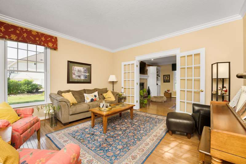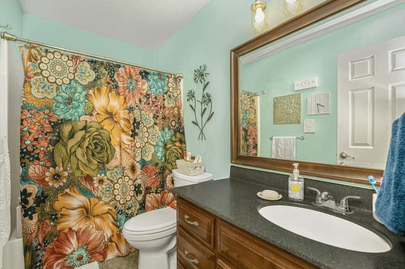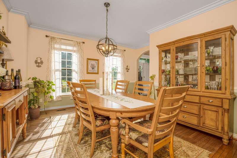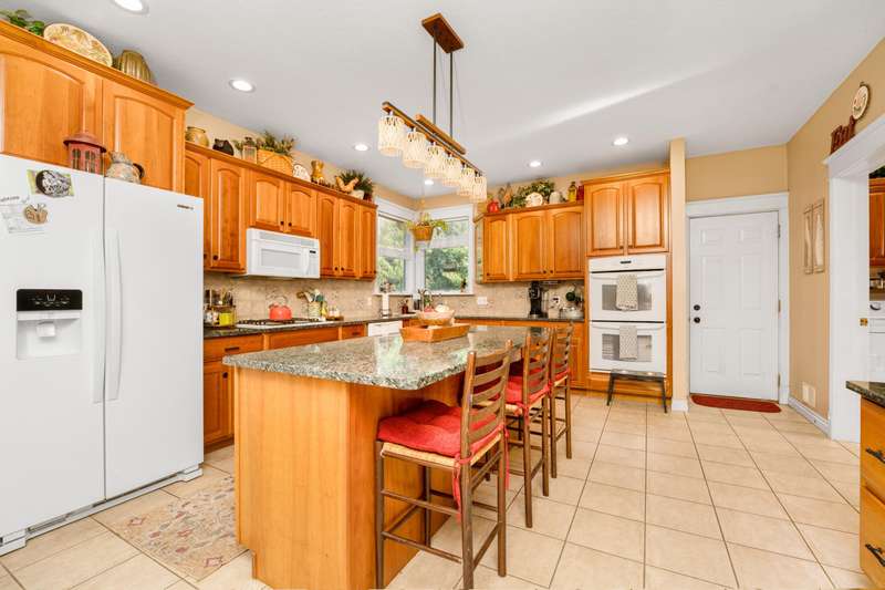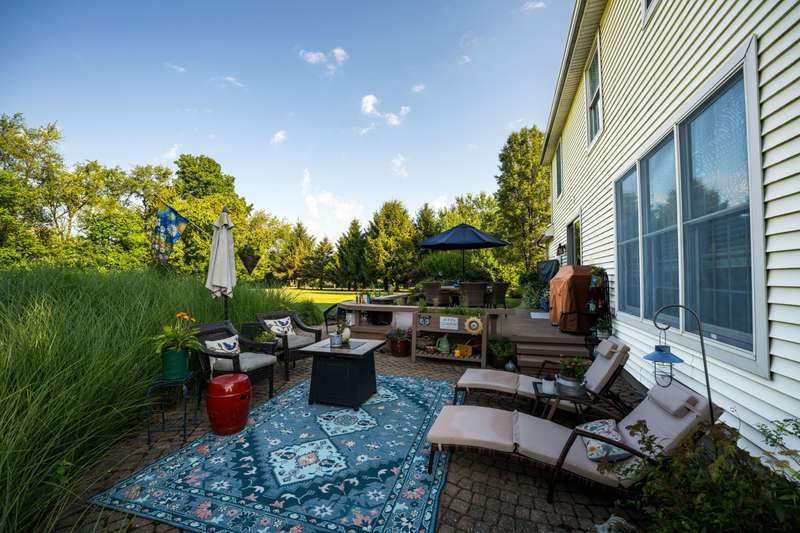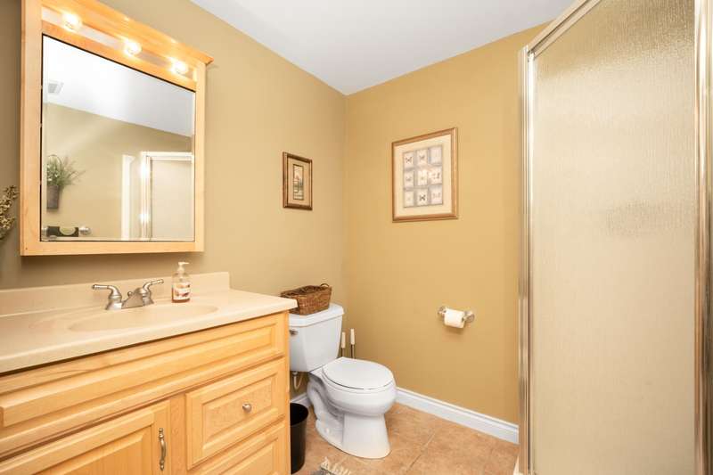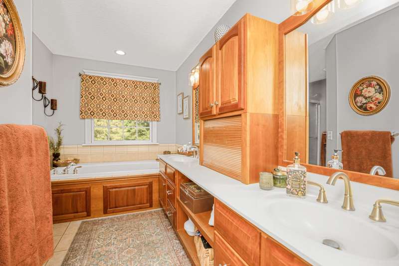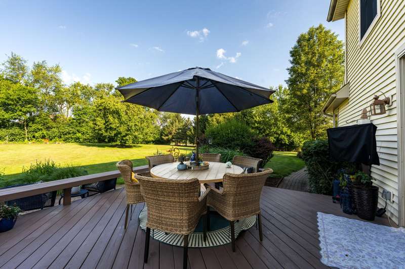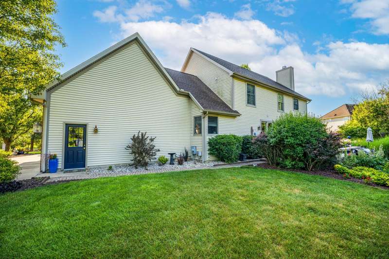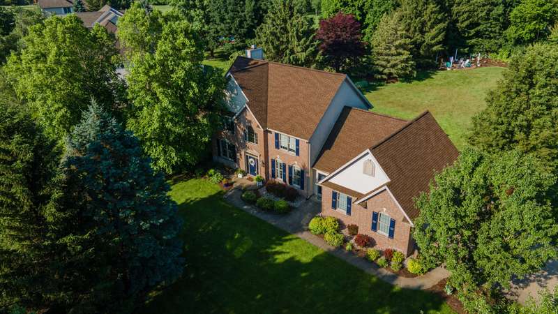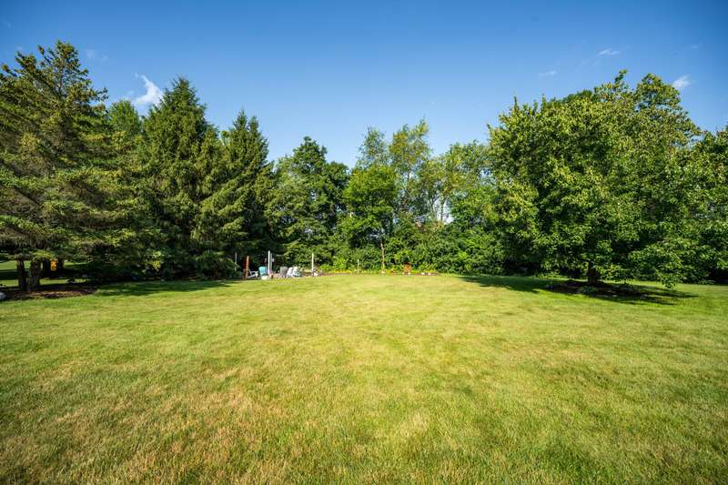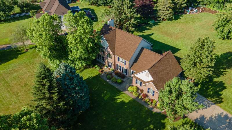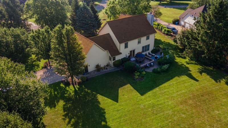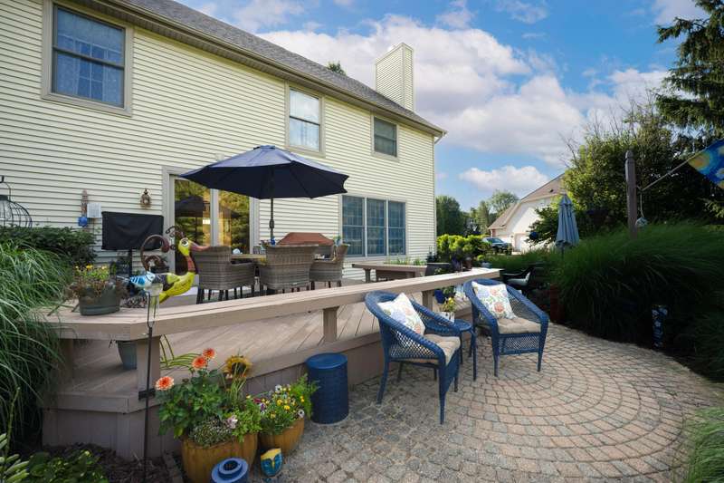 A private oasis in the middle of Weathervane Farms. Over an acre of land with multiple outdoor living spaces and both flower and vegetable gardens. The open staircase welcomes you as you enter the front door. Large kitchen with solid surface counters and plenty of space to cook and bake. Informal eating area looks out over the spacious back yard. The slider leads to the deck and patio. The family room is comfy and cozy with a fireplace. Upstairs are 3 family bedrooms and a family bath. The primary bedroom is spacious, and the private bath has two sinks, a shower and a soaking tub. The lower level has a garden view. Lots of space to entertain, with a wet bar. The 3rd full bath fills out the finished space, but there is still space for storage. Come on out and take a look.