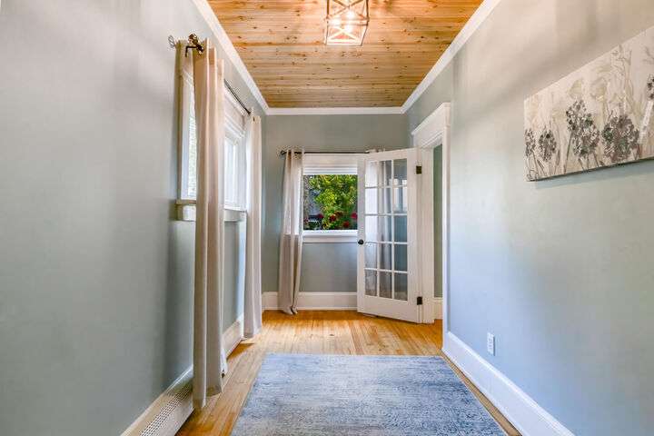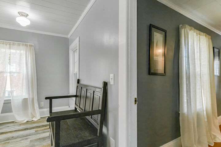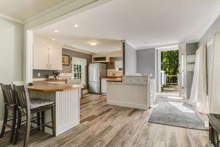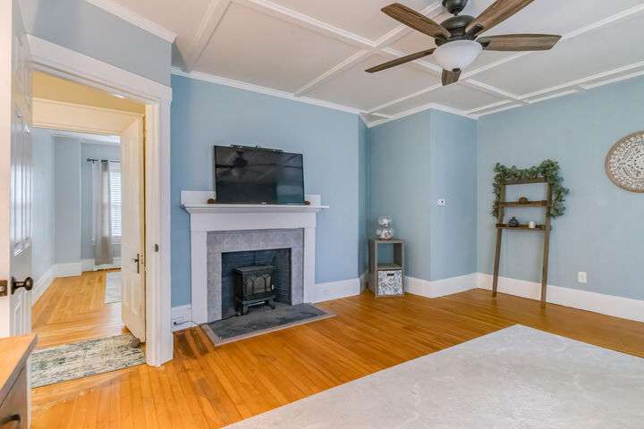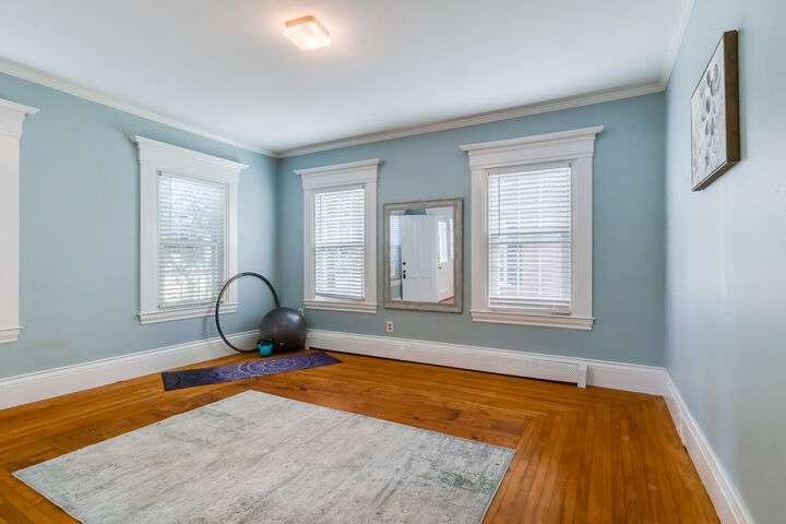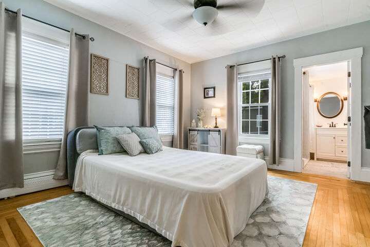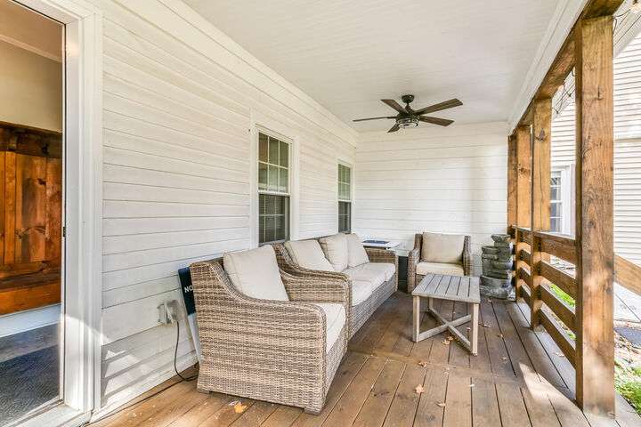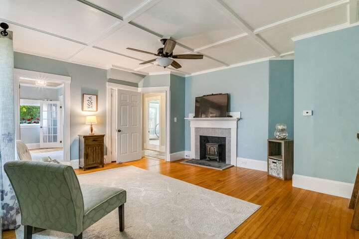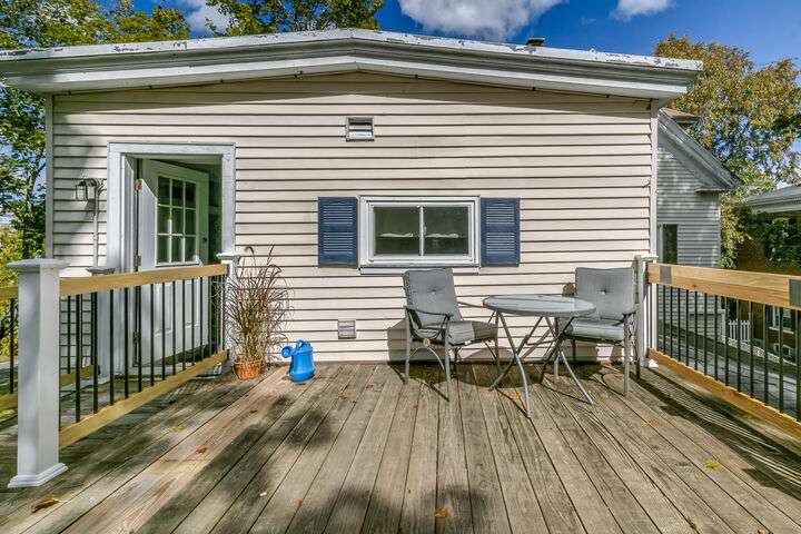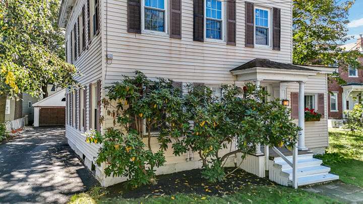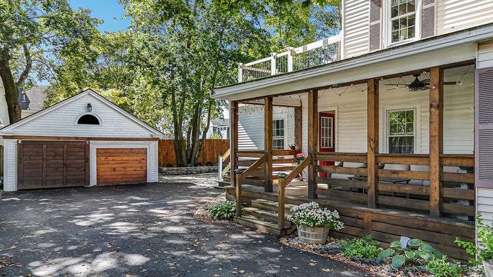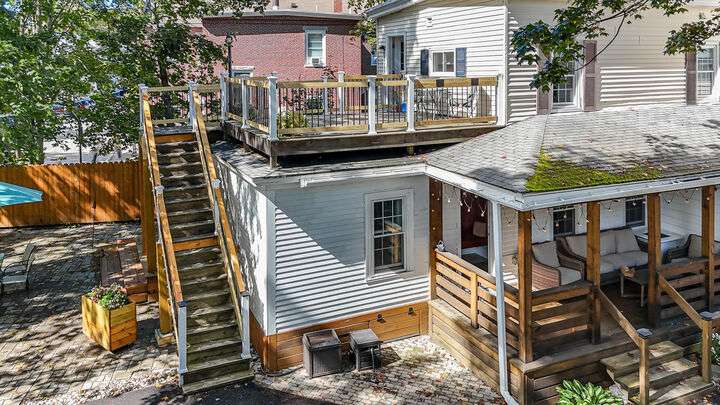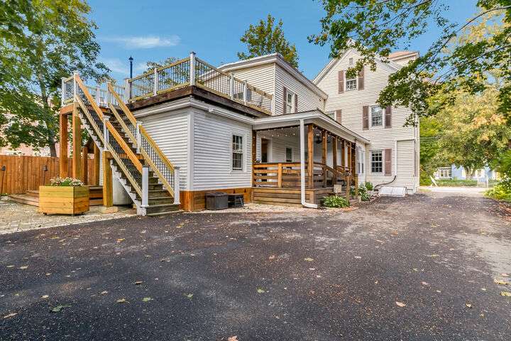 Fantastic Investment Opportunity! Nestled in the Historic District of Saco, this captivating property offers a rare opportunity to build equity while embracing the timeless charm of Maine living. The first unit welcomes you with a bright and airy layout, featuring two cozy bedrooms and two beautifully appointed baths. Sunlight pours into the expansive living spaces, accentuating soaring nine-foot ceilings, gleaming wood floors, substantial trim, and a custom-crafted banister that reflect classic New England craftsmanship. A covered porch invites you to savor morning coffee as the crisp Maine air mingles with the scent of old-growth trees. Upstairs, the second unit features a recently renovated rooftop deck with all-new railings, providing the perfect perch for watching spectacular sunsets or hosting warm summer gatherings under the open sky. Thoughtful updates throughout the home.The one-car garage, complete with ample storage and a functional workspace, boasts a roof redone in August 2025, while the newly paved driveway enhances both convenience and curb appeal. The shared, fenced-in backyard offers a charming firepit and inviting entertaining area, ideal for cozy Maine evenings with friends and family. Just minutes from Main Street, local coffee shops, schools, highways, and grocery stores, the property also provides easy access to Maine's iconic coastal escapes, including Ferry Beach State Park, Old Orchard Beach, and Camp Ellis. With its perfect blend of historic elegance, modern comforts, and quintessential Maine character, this property is a truly exceptional investment opportunity. A place where timeless charm meets practical living in one of Maine's most desirable historic neighborhoods.