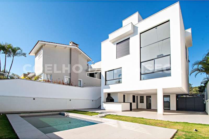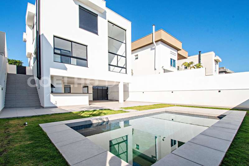 Casa nova, moderna, com quatro suítes, escritório, um excelente espaço gourmet, piscina, garagem para quatro carros cobertos, dependência completa e uma deslumbrante vista para a mata.Localizada em um condomínio clube.