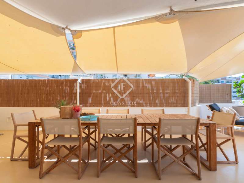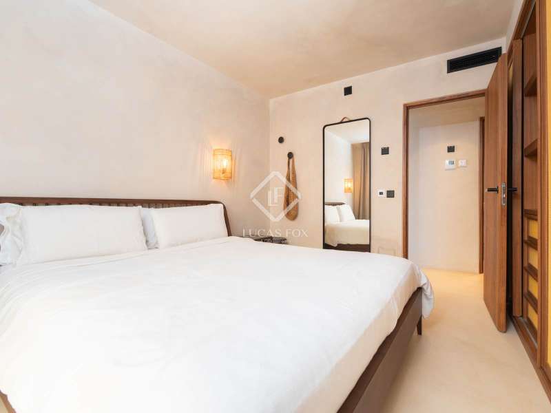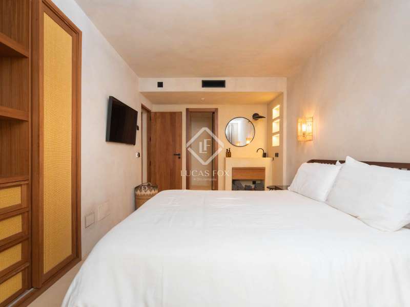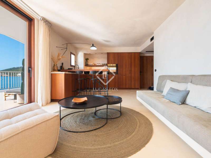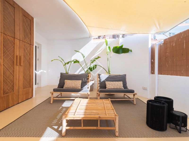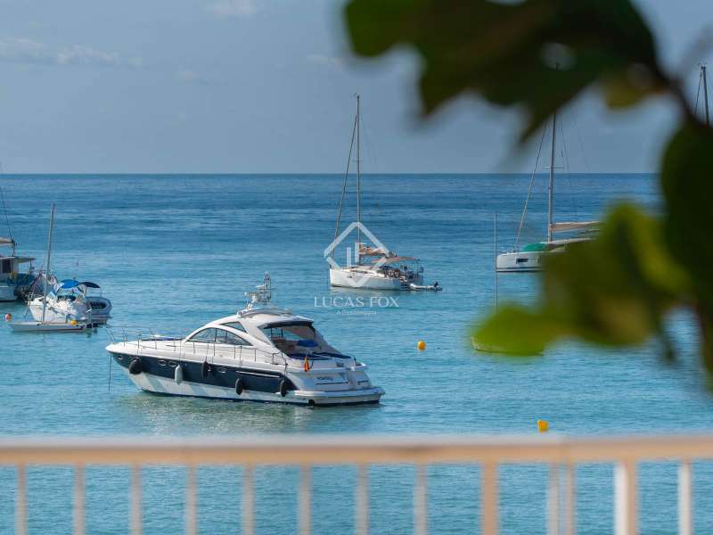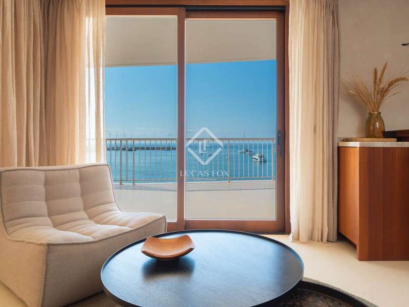 Lucas Fox presents this spectacular 2-bedroom, 2-bathroom apartment, completely renovated with high-quality finishes, located in the coveted seafront area of Santa Eulalia. The property has a constructed area of 152 m², distributed over 65 m² of interior space and an impressive 80 m² terrace offering panoramic views of the Mediterranean Sea. The interior has been tastefully renovated, combining elegance, functionality, and comfort. The microcement floors provide a minimalist and modern touch, while the underfloor heating and air conditioning system ensure optimal temperatures throughout the year. The living room and kitchen area is spacious and bright, with floor-to-ceiling windows that open completely to integrate the terrace as a natural extension of the property, creating a perfect space for relaxing or entertaining. The open, fully equipped kitchen combines design and practicality, with state-of-the-art appliances and high-quality finishes. The main bedroom features an elegant en-suite bathroom . The second bedroom is equally spacious and bright, with a modern, separate bathroom . The location is unbeatable: directly on Santa Eulalia beach and just steps from a diverse gastronomic offering, exclusive boutiques, amenities , and the marina. Here you can enjoy the Mediterranean lifestyle at its finest, with the convenience of having everything within easy reach. This apartment is a unique opportunity for those seeking a move-in-ready luxury property in one of Ibiza's most desirable areas , whether as a permanent residence, second home, or high-yield investment.