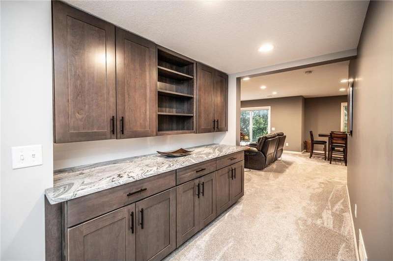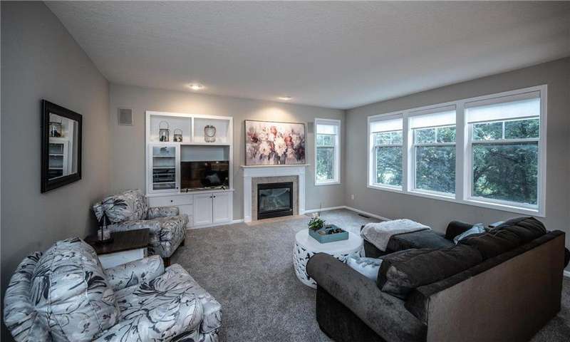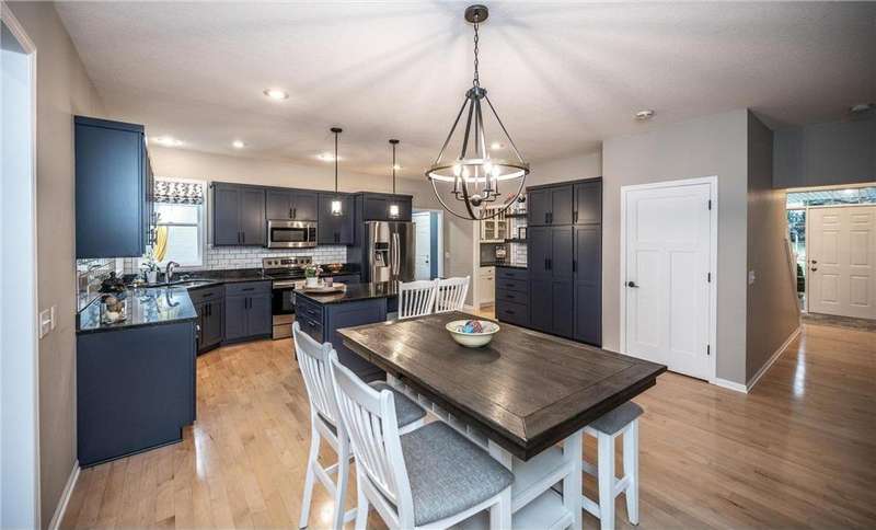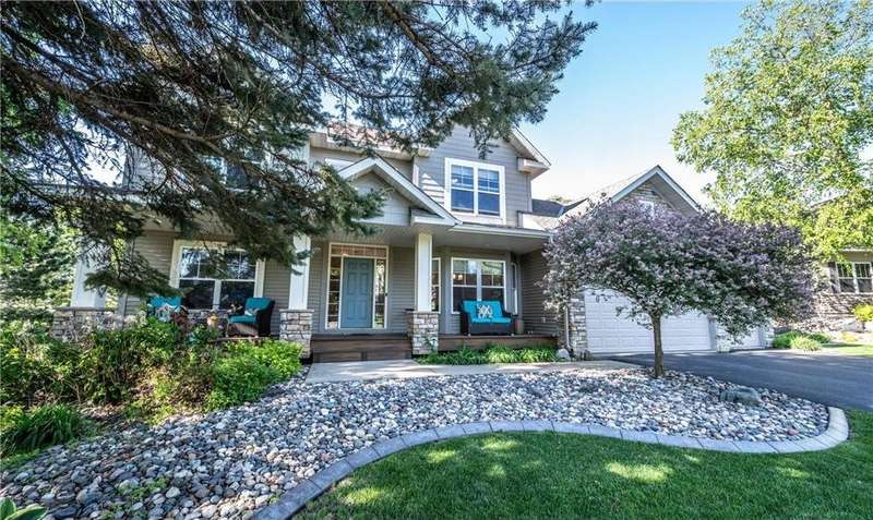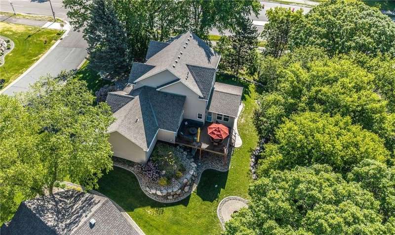 Please look and show. Welcome to this immaculate, updated former Country Joe Homes model located on a heavily wooded lot, across from Century Middle and a short walk to Lakeville North High. Great room design features a 2023 remodeled kitchen, SS appl, large center island, informal dining area that all opens to the great room with a cozy gas fireplace, side built-ins, large windows overlooking the beautiful yard. You will love the vaulted 4-season porch, surrounded with windows to let nature in. A maintenance free deck makes for easy grilling and entertaining. Main flr office and a formal dining room face the front of the home. Upper level features a large primary suite w/windows to the backyard, walk-in closet and an updated primary bath w/jetted tub and separate shower. Three add'l BR's and a full bath complete this level. An awesome walk-out lower level features a family room, game table space w/beverage refrig, and a built-in cabinets in the hall area. Fifth BR and 3/4 bath are add'l features. Walkout to the stone patio area and beautiful backyard complete with a paver patio firepit feature. Roof 2019, HVAC 2018. Nothing to do but move in!