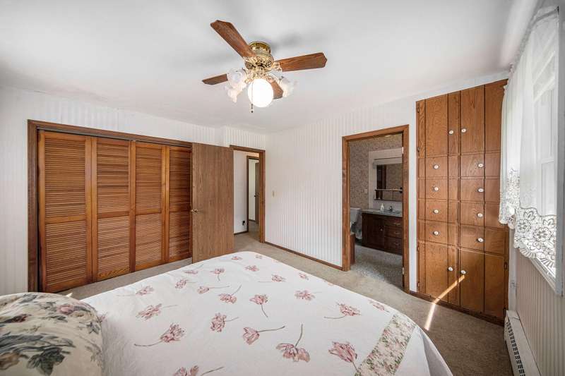 Open House 10/11, 1:30-3:30! Enjoy North Lake with a short walk to your private beach & deeded docking privileges without paying lakefront taxes! This double lot, over an acre, is surrounded by rec areas & in the Chelsea School District. With 2,500 SF, this one-owner home blends spacious living with the retro charm of its era, showcasing custom features throughout. Bright living area with seasonal lake views opens to a hearth room with cozy wood burner & door wall to private deck adjoining the second garage/pole barn, large enough for your boat or camper. 3 bedrooms including a primary suite all with unique built ins, second full bath & convenient laundry all on one floor. The full finished lower level features a second kitchen, full bath & additional living space, ideal for multigenerational living, plus direct access to the 2-car garage. Outbuilding with heightened garage door includes a woodshop & partially finished upper level for potential living, game, or hobby space. Price reflects some updating needed but will be gem with all it has to offer! Acreage and taxes are the sum of both parcels and taxes are non homestead status.