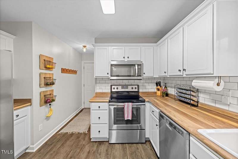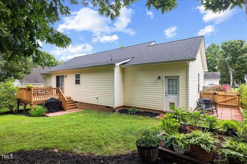 Welcome home to Groveton Trail, a charming ranch perfectly positioned in the heart of Downtown Wake Forest. NO HOA!!! This 3 bed, 2 bath beauty offers 1,429 square feet of thoughtfully designed living space that blends comfort, style, and functionality. From the moment you arrive, the welcoming rocking chair front porch sets the tone as a relaxing spot to unwind with your morning coffee. Step inside to an open-concept layout where natural light fills the living room, anchored by a cozy fireplace. The kitchen is a standout with stainless steel appliances, with a gorgeous butcher block look on the countertops, a pantry, and ample storage, making it both beautiful and practical for everyday living. The spacious primary suite is tucked away for privacy and features an en-suite bath and a generous walk-in closet. Two additional bedrooms provide flexibility for guests, a home office, a bonus room, or hobbies. The fully encapsulated crawl space adds an extra layer of comfort, efficiency, and peace of mind. Out back, a large deck overlooks a backyard that truly stuns: fully fenced, beautifully maintained, and ready for gatherings, gardening, or playtime with pets. Whether you are entertaining friends or enjoying a quiet evening under the stars, this outdoor space delivers. And the location? It doesn't get better than this. You are moments from greenways, dog parks, shopping, dining, and the charm of Downtown Wake Forest. This home offers the best of both worlds... small-town warmth with easy access to modern conveniences. Don't miss your chance to make 521 Groveton Trail your next chapter. Schedule a showing today and see why this home is one you will not want to leave!