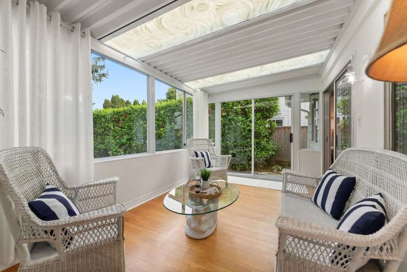 Live the beach lifestyle in this bright and cheerful 2-bed, 2-bath rancher in the heart of Crescent Beach—a welcoming seaside community! Enjoy a spacious open floor plan, cozy fireplace, and a large primary bedroom with 3-pc ensuite. The sunny solarium opens to a private backyard with storage shed. Recent updates include a renovated main bath, new lighting, some electrical, fresh paint, new kitchen countertops, updated appliances, and new flooring in the laundry and foyer. Best of all, you’re just steps from the beach!