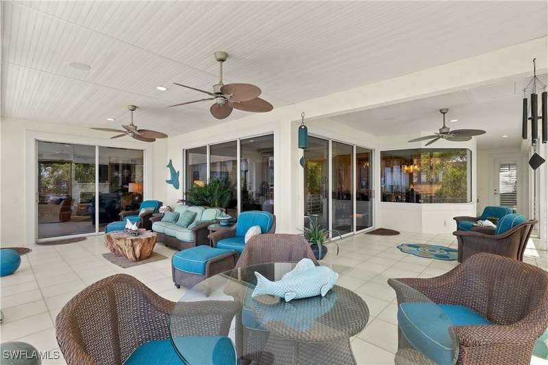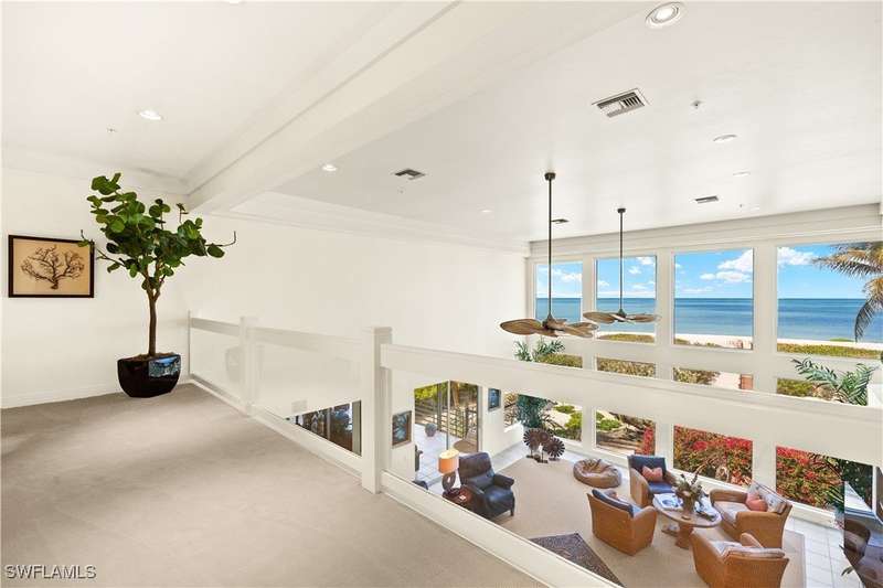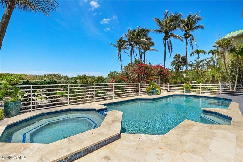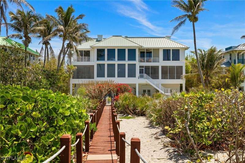 Fantastic Private Beachfront Sanctuary located on the Gold Coast of Captiva Island, where timeless craftsmanship meets coastal luxury. Framed by beautiful Royal Palms and lush, mature landscaping, this extraordinary estate is a rare opportunity to own one of Captiva's most unique and artfully designed properties. A beautifully maintained private boardwalk winds through native foliage, offering quick and effortless access to Captiva's world-renowned white sand beaches and turquoise waters. The oversized resort-style pool with integrated spa, and expansive covered lounge area creates the perfect environment for laid-back island living or upscale entertaining. Step inside through hand-crafted double doors by renowned sculptor Kim Brandell into a soaring great room, where floor-to-ceiling windows frame postcard-worthy views of the Gulf and surrounding nature. Natural light floods every corner, enhancing the home's thoughtful architecture and elevated coastal feel. The gourmet kitchen is both functional and stylish, featuring high-end appliances, extensive counter space, a large walk-in pantry, and seamless flow into the main living areas. The spacious VIP suite offers the ultimate retreat-located just off the elevator, it features a private balcony, an expansive sitting/dressing room, floor-to-ceiling windows, and a luxurious bath complete with oversized shower, soaking tub, and custom mirrors. The home is spacious thru out offering private guest suites for your guest and family to enjoy. Additional highlights include concrete construction on pilings, estate zoning (with potential for additional dwellings), huge rec space, generous balcony and deck space on all levels, and panoramic Gulf views throughout. This is not just a home-it's an experience. A rare blend of serenity, style, and superior design, tucked away in one of Captiva Island's most coveted settings.