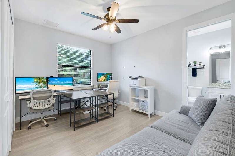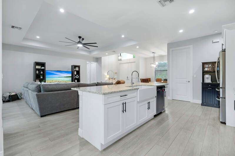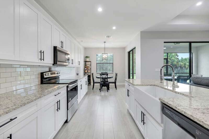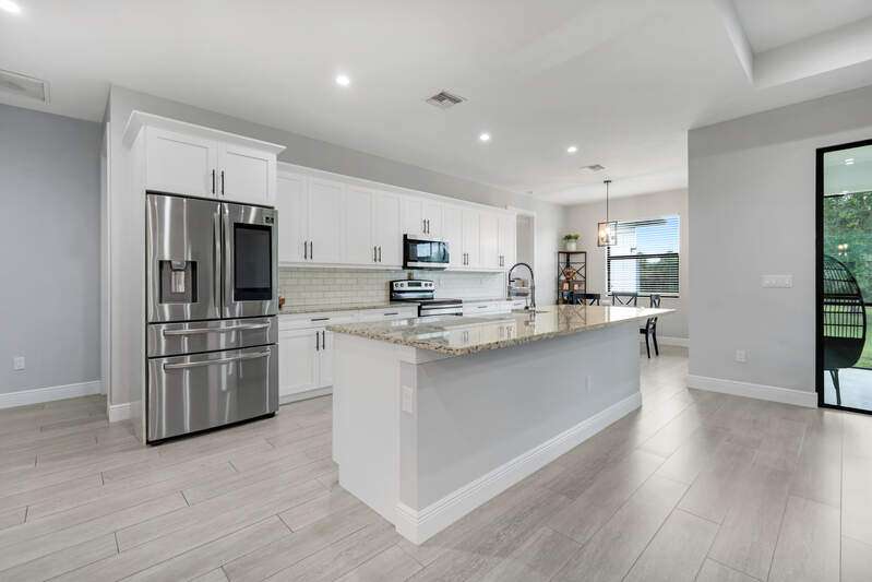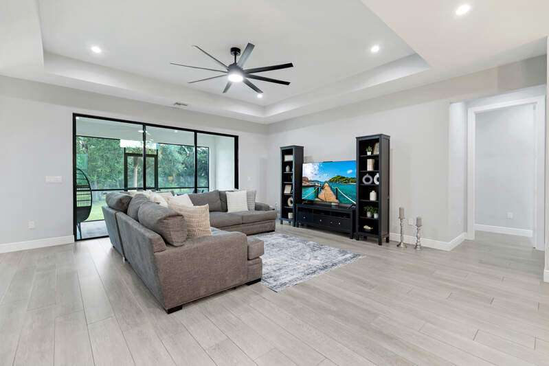 Perfectly placed on 2.5 UPLAND acres, this 4-bedroom, 3-bathroom custom-built residence offers the ultimate blend of privacy, modern luxury, and functionality. With 2,403 square feet of thoughtfully designed living space, this is far from your average builder-grade home - it's a true personal oasis. As you drive beneath the canopy of trees lining the extended driveway, the property unfolds like a scene from a storybook - peaceful, private, and perfectly positioned well off the road. Inside, you're welcomed by an open-concept floorplan with soaring ceilings, upgraded tile flooring, and abundant natural light pouring in through oversized sliders that frame the serene backyard views. The heart of the home features a chef-inspired kitchen with white shaker cabinetry, granite countertops, subway tile backsplash, stainless steel appliances, and an oversized island - ideal for hosting and everyday living. The spacious great room offers ample space for gatherings, while the split-bedroom layout ensures privacy for all. The owner's suite is a luxurious retreat with tray ceilings, walk-in closet, and a spa-inspired ensuite complete with a freestanding soaking tub, glass-enclosed dual-entry shower, and elegant finishes throughout. Step outside to your screened-in lanai and take in the peaceful wooded views. With ample room to build your dream pool, this home is absolutely pool-ready and designed for the Florida lifestyle. Additional highlights include: 3 full bathrooms, including a cabana bath with exterior access-ready for a future pool, Dedicated laundry room with custom wood shelving and storage, Oversized 2-car garage, Extended driveway with additional parking pad. No HOA, so bring your toys, boats, or build a workshop! Located in the heart of Golden Gate Estates, just minutes to the brand-new Randall at Orangetree Plaza featuring ALDI, Ace Hardware, Chase Bank, AutoZone, and more - plus top-rated schools just a short drive away! This home checks every box and then some - upgraded, move-in ready, and nestled in one of Naples' most sought-after non-HOA neighborhoods. Your perfect escape is waiting.
