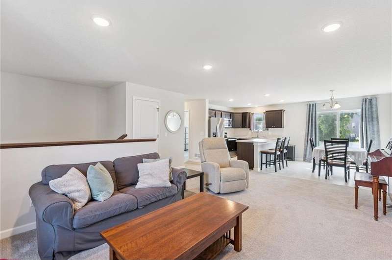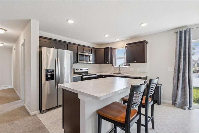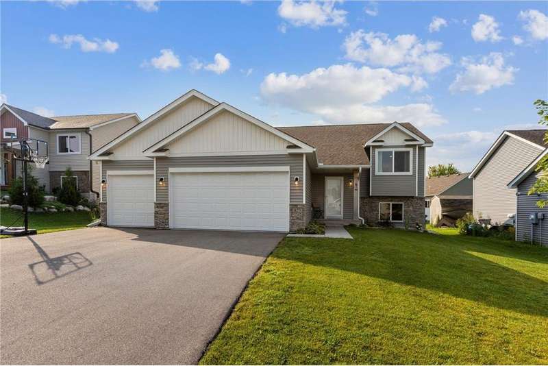 This beautiful home offers 5 bedrooms, including 3 on the main level, and a private full bath in the primary suite. The heart of the home features an open-concept living, kitchen, and dining area with a kitchen center island, stainless steel appliances, and plenty of natural light—perfect for everyday living and entertaining. The fully finished basement expands your living space with a large rec room, a generous sized family room, 2 additional bedrooms, and a bathroom that’s already roughed in and ready to be finished. Enjoy the outdoors with a spacious backyard, and appreciate the convenience of a 3-car heated garage for vehicles, storage, and hobbies. Also located nearby the Elementary School.