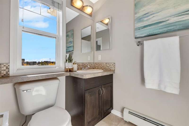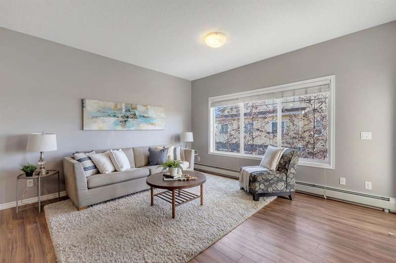 Welcome to 4 Kingsland Close SE, a bright and spacious top-floor corner unit in the highly desirable community of King Heights, Airdrie. Perfect for first-time home buyers or savvy investors, this home offers exceptional comfort, privacy, and convenience. Step inside to discover a well-designed open-concept layout featuring a modern kitchen with plenty of cabinetry, stainless steel appliances, and a breakfast bar that flows seamlessly into the dining and living areas — ideal for entertaining or relaxing after a long day. The primary bedroom includes a private ensuite bathroom, while the second bedroom and full guest bath provide flexibility for a roommate, home office, or visiting family. Enjoy peace and quiet with no neighbours above or beside you, and take advantage of your private balcony with a natural gas BBQ hookup, perfect for year-round outdoor grilling. Additional conveniences include an assigned outdoor parking stall and a separate storage unit in the basement, providing ample space for all your extras. Situated in a prime location, you’re just minutes from Kingsview Market, Sierra Springs Shopping Centre, restaurants, parks, schools, and have quick access to the QEII Highway for an easy commute to Calgary. Whether you’re looking for a low-maintenance lifestyle or a turnkey investment property, this home truly checks all the boxes!
