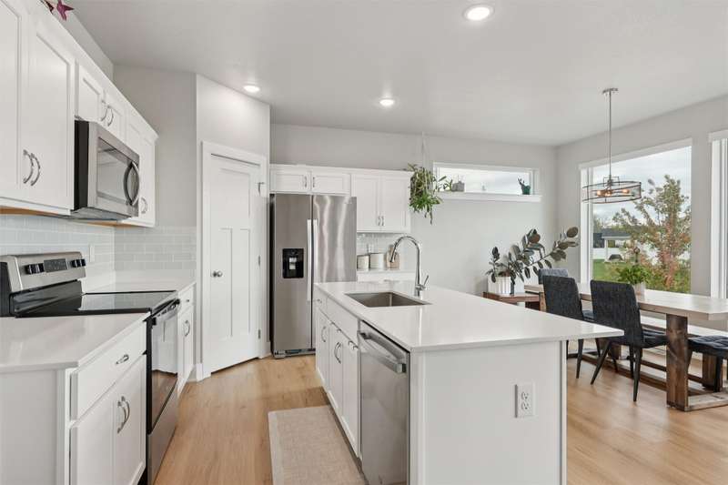Once you step inside this beautiful 4 bd 3 bathroom ranch home and see how airy, bright and beautiful it is you will want it for your own! Living room offers a wall full of huge windows-with automatic blinds. Spacious living room with electric fireplace. Open to a wonderful dining area with transom window and spacious kitchen. You will definitely want to check out this extra deep pantry-rare find! Great primary bedroom with large window and transom as well. Great walk-in closet attached to the beautiful bathroom! Main floor laundry for convenience. 2nd bedroom and mud area complete the main floor. Lower level with spacious family room, 2 more bedrooms, full bath and still generous amount of storage! 2 car attached garage. Outside you will find a covered deck to enjoy and beautiful landscaping! Great location, close to shopping, groceries, walking paths, parks, frisbee golf and so much more!