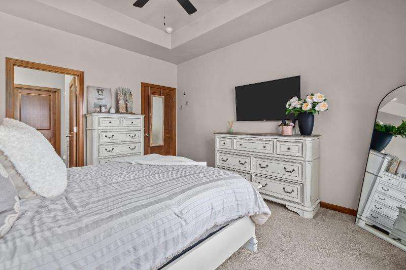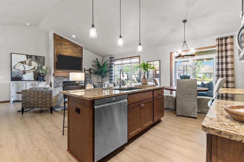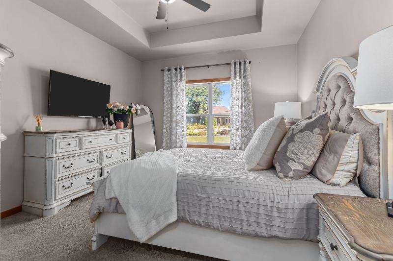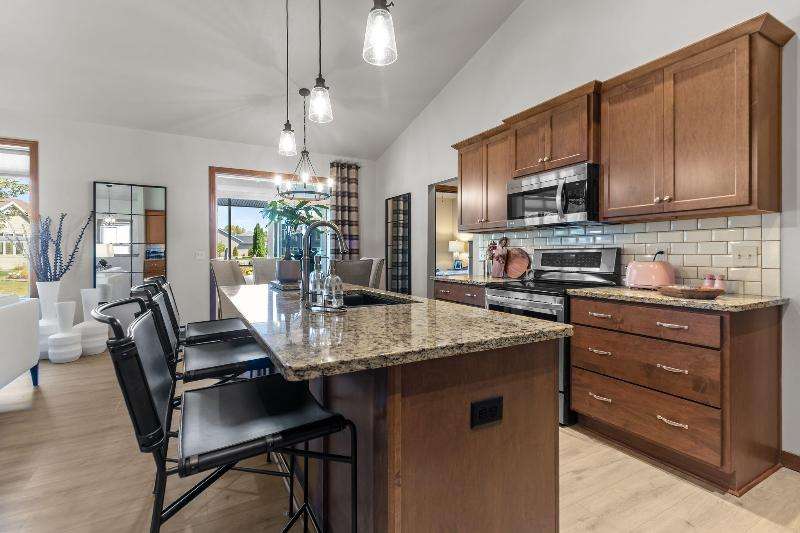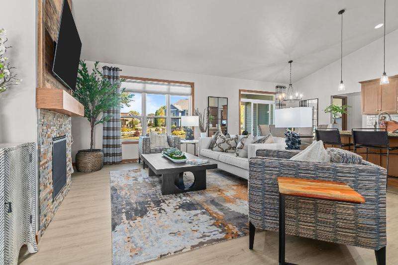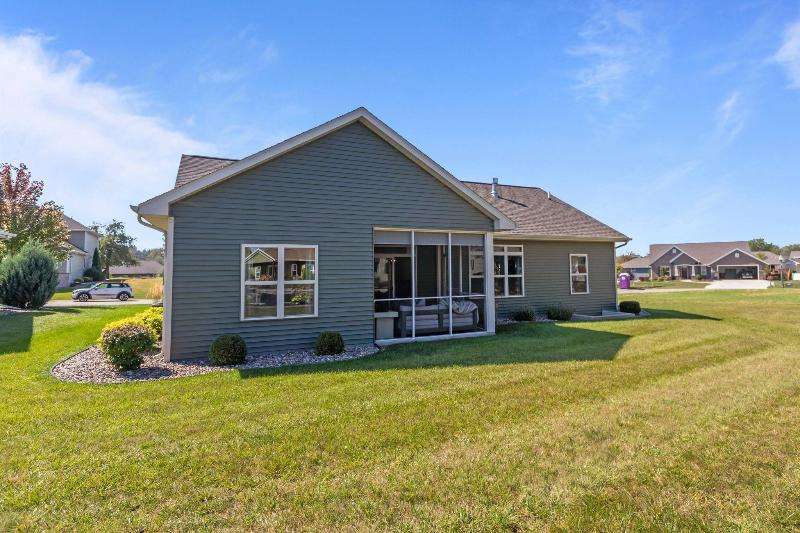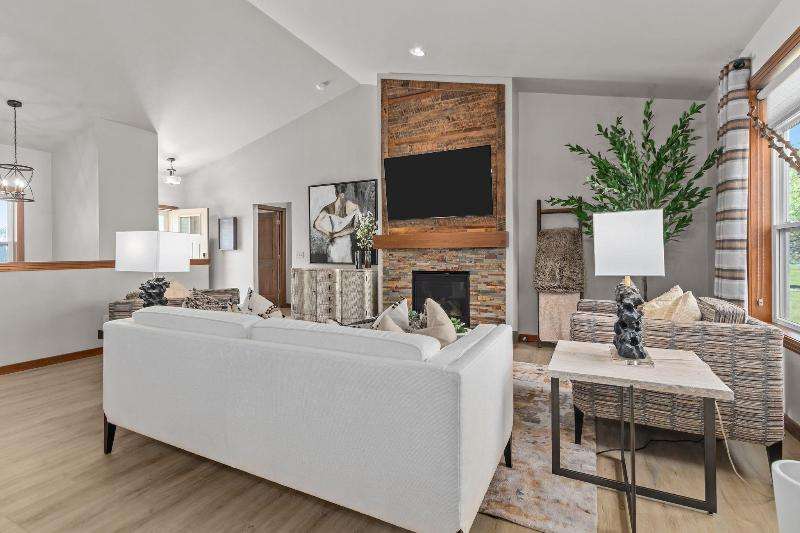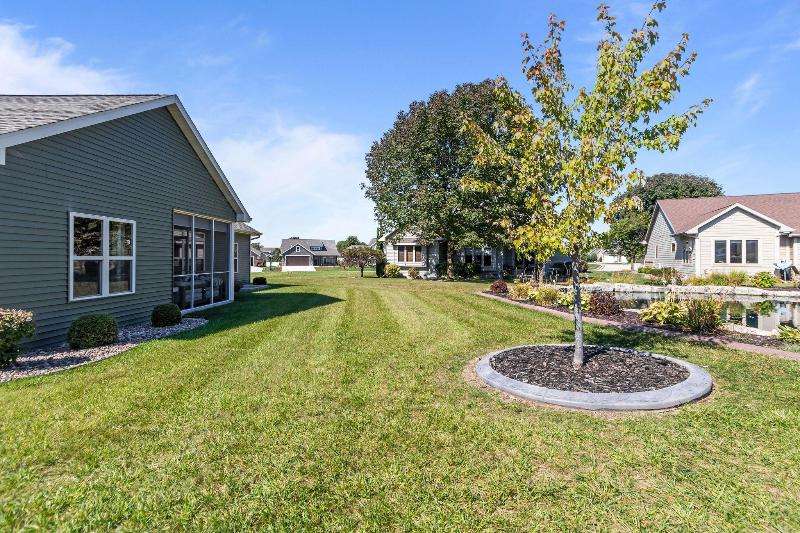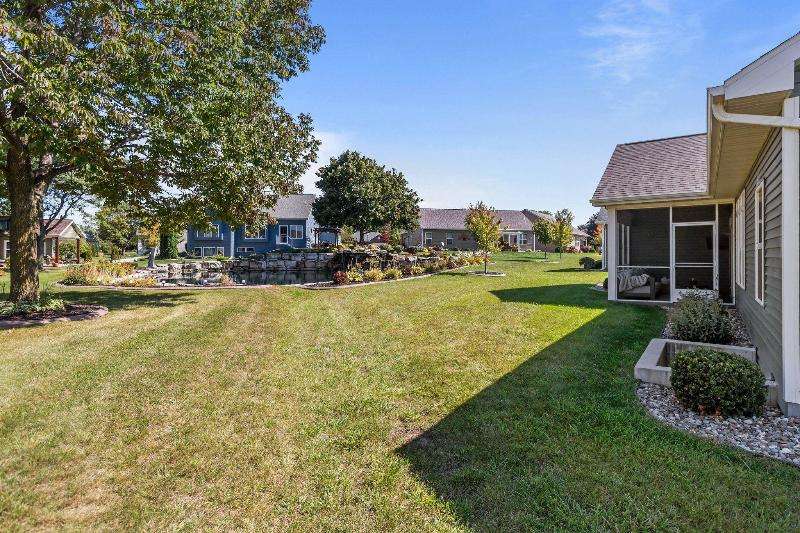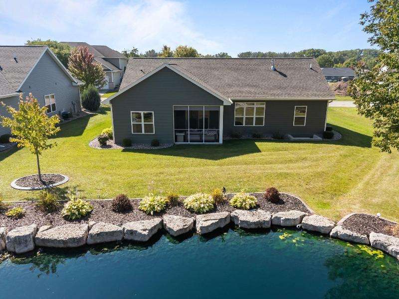 Let's Elevate Your Everyday: Step into this stunning Lake Park Villa, impeccably maintained and designed for both comfort and style. The interior is professionally designed by Designers 2, a full-service interior design. This villa offers the ease of maintenance-free living with the HOA covering lawn care and snow removal from both walkways and driveways. Inside, you'll find a granite kitchen with tile backsplash, a gas fireplace, zero-entry garage access, and a beautiful brick exterior. Enjoy the screened and covered patio overlooking a landscaped pond with a fountain--perfect for quiet mornings or evening relaxation. The lower level is ready and waiting for your finishing touches, the opportunity to expand your living space exactly how you envision it. Buyer to verify measurements.