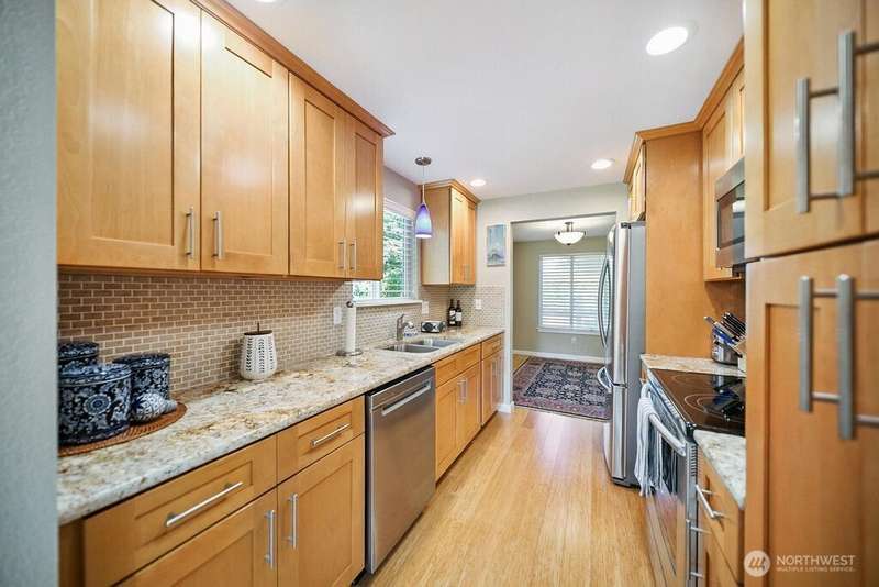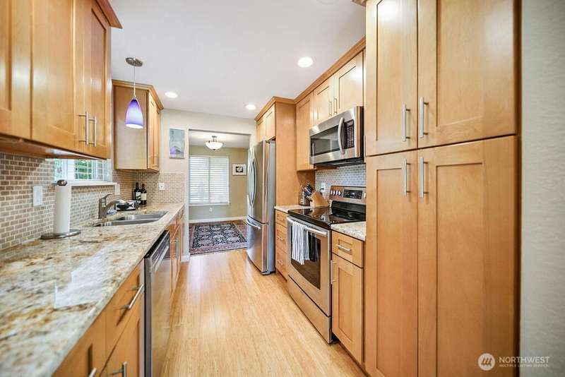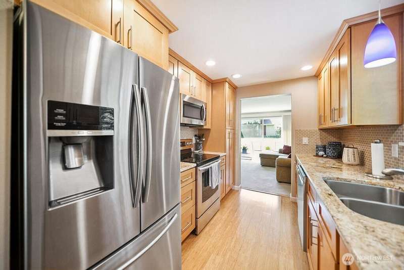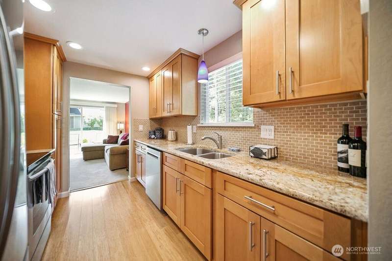 This townhouse was completely remodeled in 2016, featuring beautiful warm colors. It boasts a top-end kitchen with soft-close maple cabinetry, granite countertops & stainless-steel appliances, along with updated bathrooms, doors, trim & flooring. As an end unit, it includes a rare over-the-sink kitchen window, adding additional natural light. Meticulously clean, no pets lived in the home. It is move-in ready & located next to the Kitsap Golf & Country Club. Also featuring a cozy fireplace & a ground-level patio, along with a one-car attached garage. Conveniently located just 16 minutes to the Seattle Ferry, PSNS & Bangor & 8 minutes to all Silverdale amenities. HOA dues cover: water/sewer/garbage/cable & grounds maintenance. No rental cap.