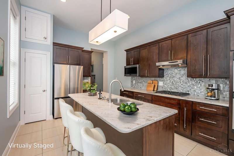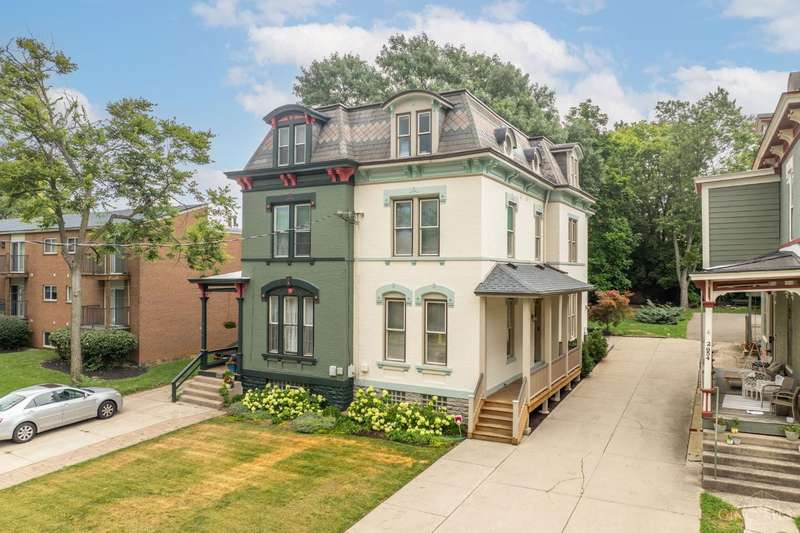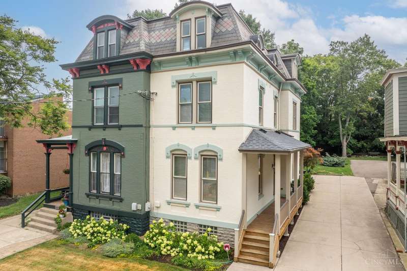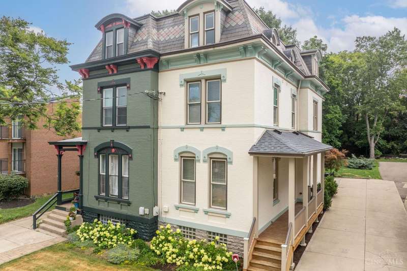 Stunning 3-story Victorian close to UC, University Hospital, and Cincinnati Children's! This fully remodeled 4BD, 3.5BA home blends historic charm with modern luxury soaring ceilings, wide staircase w/rod-iron railings, hardwood floors, built-ins & a stone gas fireplace. Gourmet kitchen features 42 cabinets, Bosch dishwasher, granite countertops and tile backsplash, island, gas stove, double oven & walk-out to a private wooded backyard. Primary suite offers jetted tub, oversized shower, walk-in closet & laundry chute. All baths updated with granite vanities & tile. Third Bedroom boasts 2 closets & window bench with storage. Third floor has its own heating and cooling system. Enjoy a spacious front porch, off-street parking, new roof, newer windows & geothermal HVAC. Cable and ethernet wired throughout, surround sound, & security system complete the package! Located near Hauck Botanic Garden w/walking trails, green roofs, & the civic garden center.