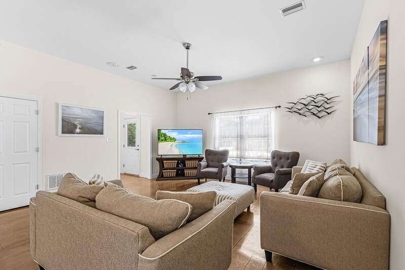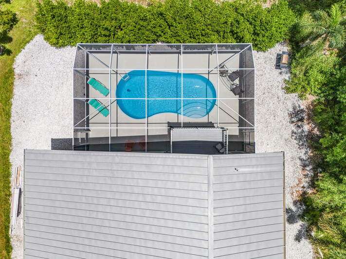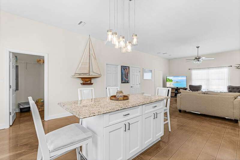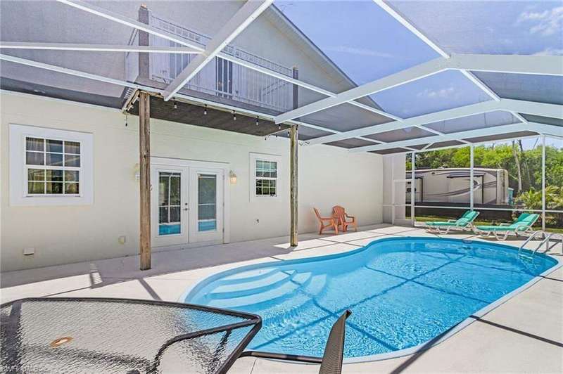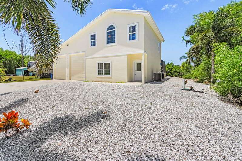 Island Living at Its Best! Have you been looking for a LARGE GARAGE and a POOL? This 3-bed, 3-bath home offers the perfect mix of comfort and function. Enjoy an open floor plan with a spacious kitchen featuring granite counters, stainless steel appliances, a large island, and a wine rack. French doors lead to a pool and lanai-great for entertaining! Built with upgrades like hurricane-impact windows and doors, a metal roof, ManaBloc plumbing, and stained concrete floors downstairs. Upstairs, you'll find hardwood floors, a large master suite with a clawfoot tub, a walk-in shower, and a closet, plus guest rooms with balcony access overlooking the pool. The oversized garage has 10' wide by 12' high doors and 14' ceilings-ideal for boats, RVs, or extra vehicles. Close to shops, dining, boat ramps, and top-tier fishing spots. Your Pine Island paradise awaits!