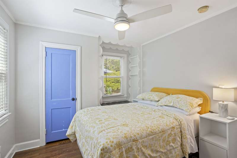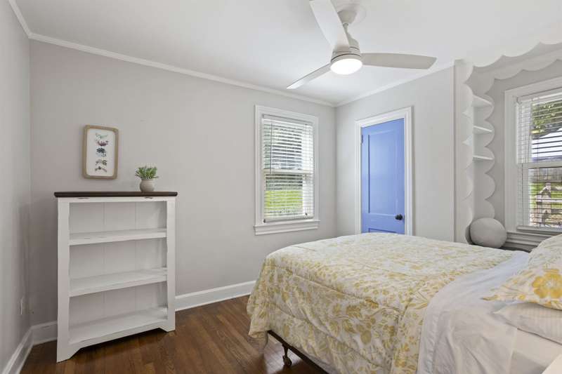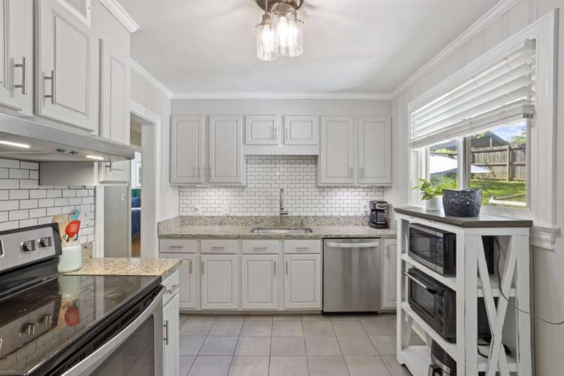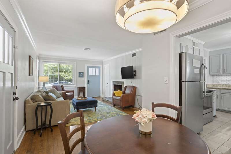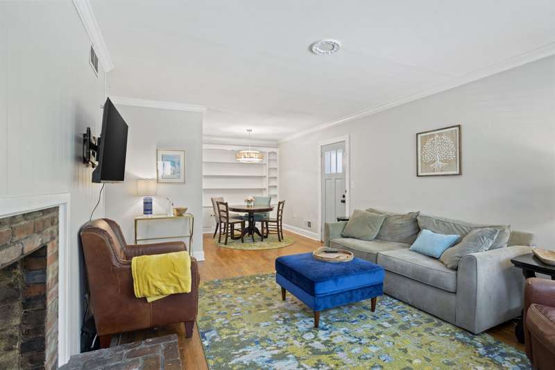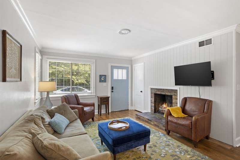 Welcome to this charming single-story home nestled in the highly sought-after Overbrook area of Greenville! Step inside to a warm and inviting living room featuring a cozy fireplace, perfect for relaxing evenings. The adjacent dining area includes a stylish built-in bookshelf and flows seamlessly into the kitchen, where you'll find sleek finishes and stainless steel appliances sure to impress any home chef. One bedroom creates a peaceful retreat with its own private ensuite bathroom which also houses the home's washer and dryer. While three additional bedrooms provide flexibility for guests, a home office, or hobbies?one even features a delightful window seat, ideal for reading or relaxing. A large full hallway bathroom serves the home with function and ease. Step out back to enjoy the serene patio overlooking a lush, tree-lined backyard complete with a small shed for extra storage. Located just minutes from vibrant Downtown Greenville, this home has the perfect blend of comfort, character, and convenience. Don't miss your chance to own a slice of Overbrook charm!