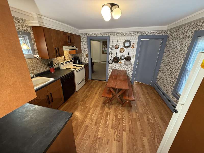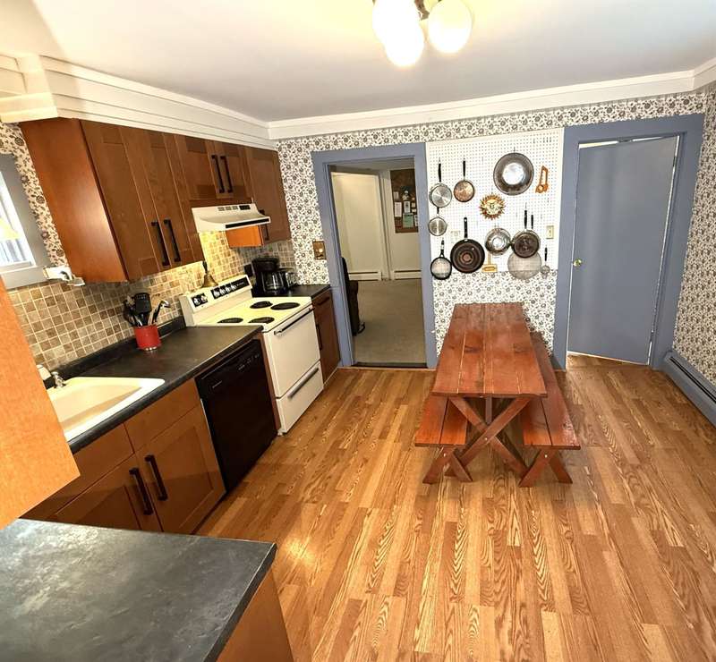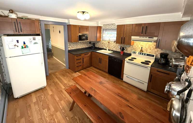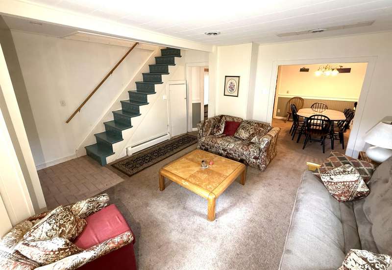 Right in the Heart of quaint Bartlett Village. Affordable 3-bedroom New Englander. Convenient location to ski mountains, snowmobiling, and beautiful hiking trails. Enter from the newly decked front porch into a cozy living room with a bay window. Enjoy mornings in your eat-in kitchen and family meals in a separate dining room with a wood stove. In the back of the home, off of the kitchen, is a spacious family room where you can walk out onto a large deck. Upstairs you will find 3 bedrooms. Great home to enjoy summer and winter activities. This is a great property for a full-time home or can be used as a rental for INVESTMENT. Offered furnished.Walking distance to Josiah Bartlett Elementary School and a town beach on the Saco River. Close to recreation trails for biking, jogging or walking.