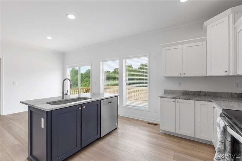 SPECIAL 4.99% rate available!!Home is Complete! BRIGHTSPEED INTERNET AVAILABLE! Welcome to your new home in the scenic Green Bay area. This beautifully finished 1,800 sq.ft. residence features a charming 6x26' Reverse A front porch and a spacious 12x16 rear deck-ideal for grilling, outdoor furniture, and entertaining. Inside, you'll find granite countertops and an open floor plan filled with natural light. The layout includes a large living room, well-sized secondary bedrooms, a generous pantry, recessed lighting, and a sliding glass door off the dining area. Other highlights include 9' ceilings and a utility room with a built-in sink. The private primary suite offers a relaxing retreat with double vanities, ample cabinet space, a tiled shower, and a separate toilet room. Outside, the home is professionally landscaped with a sidewalk connecting the front entrance to a wide driveway that provides multiple parking spaces. Don't miss your chance to own this exceptional Green Bay home-additional completed homes and lots available on the same street by the builder!