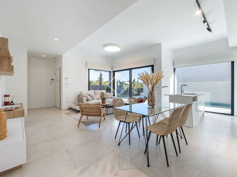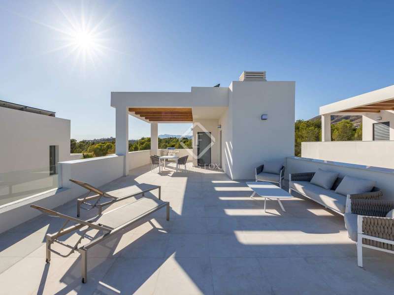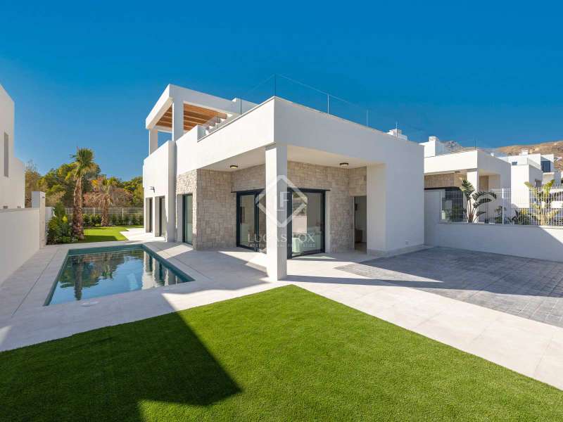 Lucas Fox is proud to present an exclusive collection of twelve villas that redefine the concept of luxury on the Costa Blanca. This contemporary property offers a perfect combination of style, comfort and a privileged location. The property enjoys a meticulously planned design and a wide range of premium features. The interior of the property offers spacious and bright interiors. It offers an open-plan living-dining room with a modern Open kitchen, equipped with the latest appliances and high-quality finishes, perfect for receiving guests or simply relaxing. The house consists of three bedrooms, each designed for maximum comfort. The spaces are spacious and bright and receive abundant natural light. In addition, two complete bathrooms with luxury finishes are strategically located to meet all the family's daily needs. The upper floor offers a private solarium from which you can enjoy panoramic views. This outdoor space is perfect for relaxing. Exterior, there is a garden area, with a magnificent swimming pool. For added convenience, the villa has a private parking space, a true luxury in this exclusive area. In summary, this exclusive newly built property is presented on the Costa Blanca in one of the most coveted areas of the region. With its contemporary design, spacious interiors, solarium with views, parking space and swimming pool, this house is perfect as a first or second residence. For more information, please do not hesitate to contact us by email or phone.