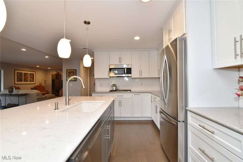 Absolutely beautiful, completely updated 2 bedroom, 3 full bath condo at Point East, Beachwood's premier condominium building. Desirable location - close to the elevator. Custom, high-quality finishes throughout. Ideal, flexible, open floor plan featuring spacious living room (27x15) opens to dining room both with natural light and engineered hardwood flooring. Gorgeous, custom, updated/remodeled kitchen with large gray center island, white Shaker cabinets, stainless steel appliances, double ovens, granite countertops, gas cooktop and ample storage and counterspace. Primary bedroom (20x14) features 2 updated full bathrooms and 2 walk-in closets. Second bedroom can be used as a bedroom, den, office or study. Third updated full bathroom, en-suite laundry room, welcoming foyer and balcony. Current decor with decorator colors, ideal for today's buyers. Point East offers unparalleled concierge services with 24-hour security, guard at gated entrance, 2 parking spaces in heated underground garage, outdoor pool, tennis court, exercise facility, guest suites and community/party room. Great location - close to restaurants, shopping, Beachwood Place, Legacy Village, LaPlace, hospitals, universities, museums and highway access.