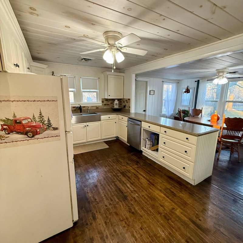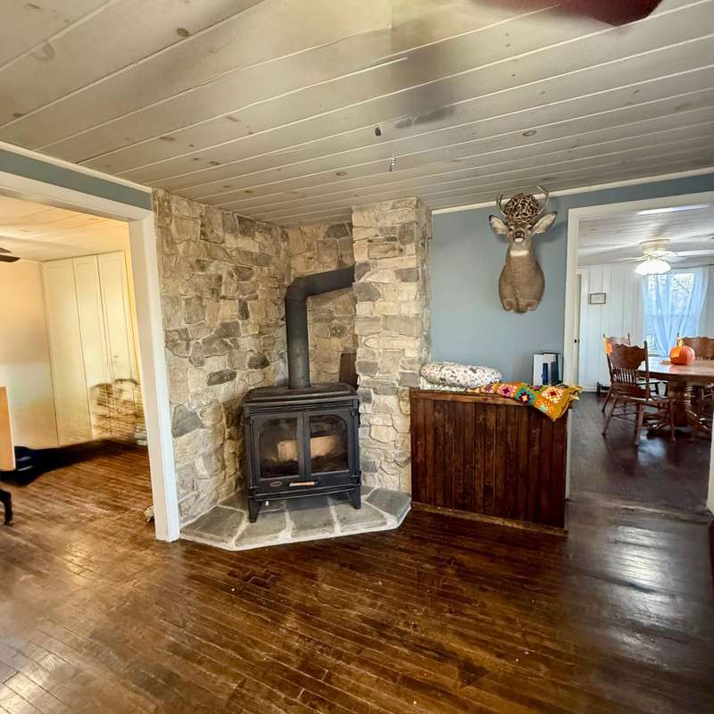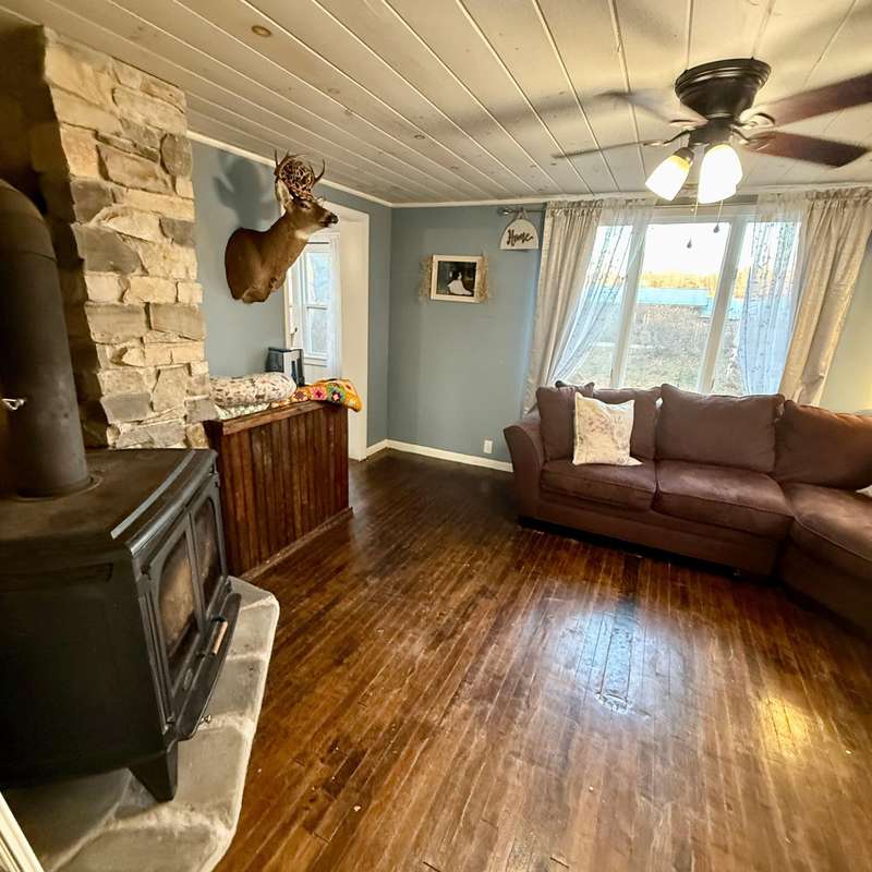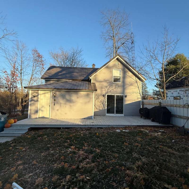 Charming three-bedroom, two-bath home set atop a hill with a wooded backdrop. Features a recently remodeled kitchen, a new metal roof (2018), and a spacious backyard perfect for gardening. Cozy stone fireplace in the family room just off the kitchen. Convenient main floor laundry with a large mudroom. Spacious ensuite. Enjoy outdoor living on the expansive deck overlooking the half-acre lot. 10x20 outbuilding for additional storage and toys. Close to the Huron-Manistee National Forest, with access to the Pere Marquette River for activities like Kayaking and fishing. The Village is about 15 minutes from Ludington, which offers beaches and parks.