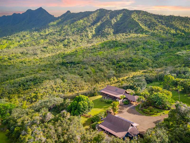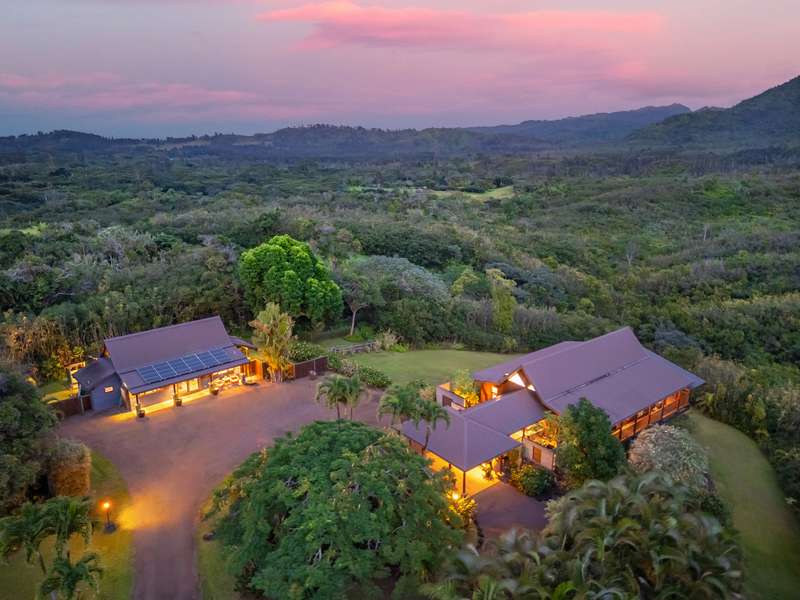 Surrounded by mature landscaping & fruit trees, this lush estate is minutes from world-class beaches, surf breaks, golf, shopping, Kilauea town, Hanalei Bay and more. It is a true North Shore retreat designed for privacy, comfort, and a deep connection with nature.