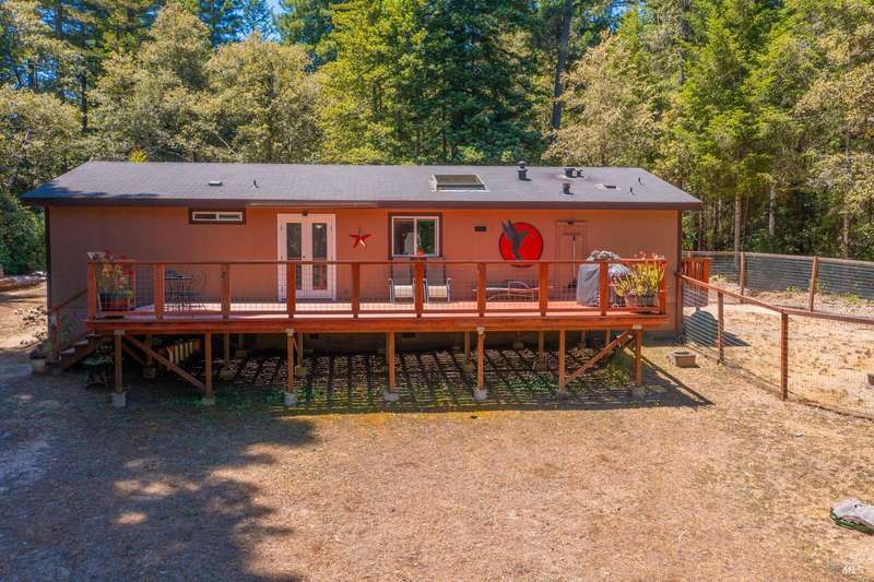 This private property on the Point Arena ridge is out of the Coastal Zone and includes a well maintained 3 Bedroom/ 2 bathroom home with a large back deck, taking the living area outdoors. This fully fenced property includes a concrete basketball half court, fenced dog area, beautiful wooded sitting areas and trails throughout including the entire perimeter. With idyllic coastal weather, this is the perfect full time home or coastal get away. 2020 Cherokee by Forest River tow behind RV included in the sale.