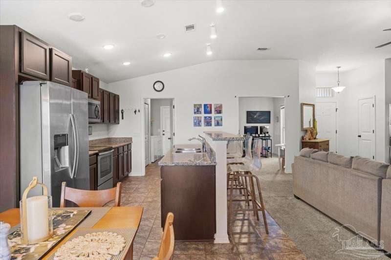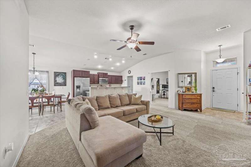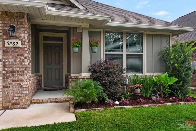 Welcome to your dream home in the desirable Woodlands community in Pace, Florida! This beautifully maintained 3 bedroom, 2 bathroom corner lot home features a spacious open floor plan with a split-bedroom layout for privacy, and a dedicated office. The chef-inspired kitchen boasts granite countertops and stainless steel appliances, flowing seamlessly into the living area for easy entertaining. Step outside to your private backyard oasis with a paver patio, shaded seating area, and custom brick fireplace, perfect for relaxing or hosting gatherings. With a double-car garage, meticulous updates, and a prime location near shopping, dining, parks, and top-rated schools, this move-in ready home offers both comfort and style.