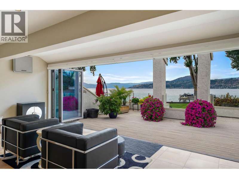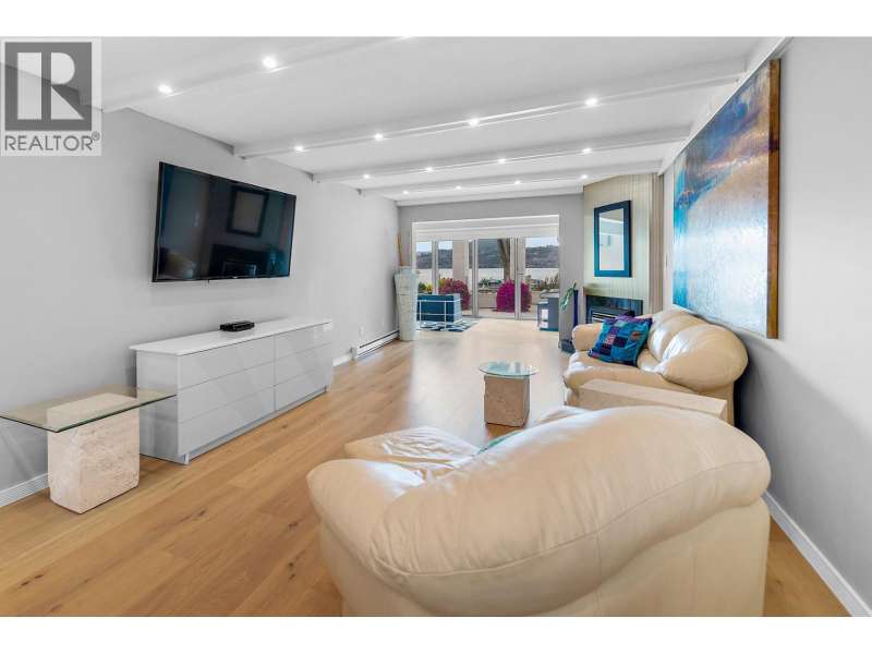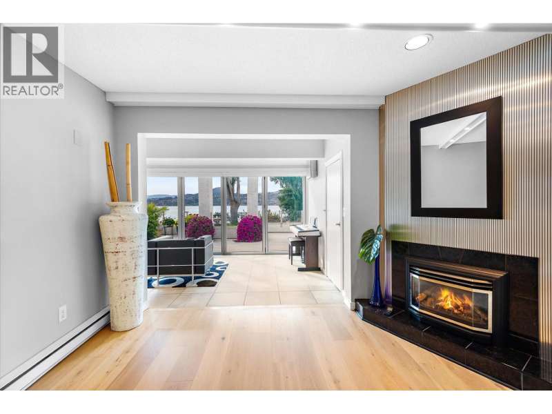 Discover the ultimate in lakefront living (WITH BOAT MOORAGE SPOT, $80,000 VALUE)at the highly coveted Kelowna Shores community. This exceptional townhome offers 300 feet of pristine sandy beach, a private dock, and ownership of your own boat moorage—a rare and valuable feature. Step onto the expansive 23’ x 20’ deck, complete with an automatic awning, and take in breathtaking views of Okanagan Lake, lush green lawns, and meticulously maintained landscaping. Enjoy the lakeview pool and hot tub, with effortless access to the beach and dock just steps away. Inside, this spacious and updated home features 2 bedrooms, 2 bathrooms, and a stunning sunroom with 20-foot nano doors, creating a seamless indoor-outdoor living experience. Offered fully turn-key, this home includes most furnishings and electronics—ready for you to move in and embrace the lakefront lifestyle. Includes one parking stall; please note this is a pet-free community. Don’t miss this rare opportunity—contact me today for a private showing! (id:7434)